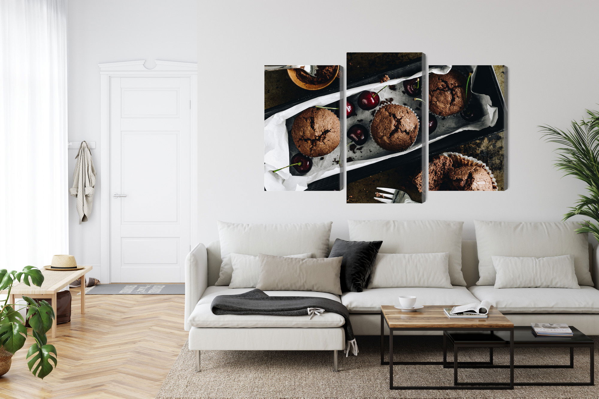 Motivet Muffins with cherries återges med hög färgprecision och detaljrikedom tack vare HP Latex-teknologi. Trycket sker med vattenbaserade, luktfria och GREENGUARD Gold-certifierade bläck som ger en upplösning på upp till 300 DPI. Färgerna är UV-beständiga och behåller sin styrka även i ljusa rum, vilket gör tavlan lämplig för både hem- och offentliga miljöer.