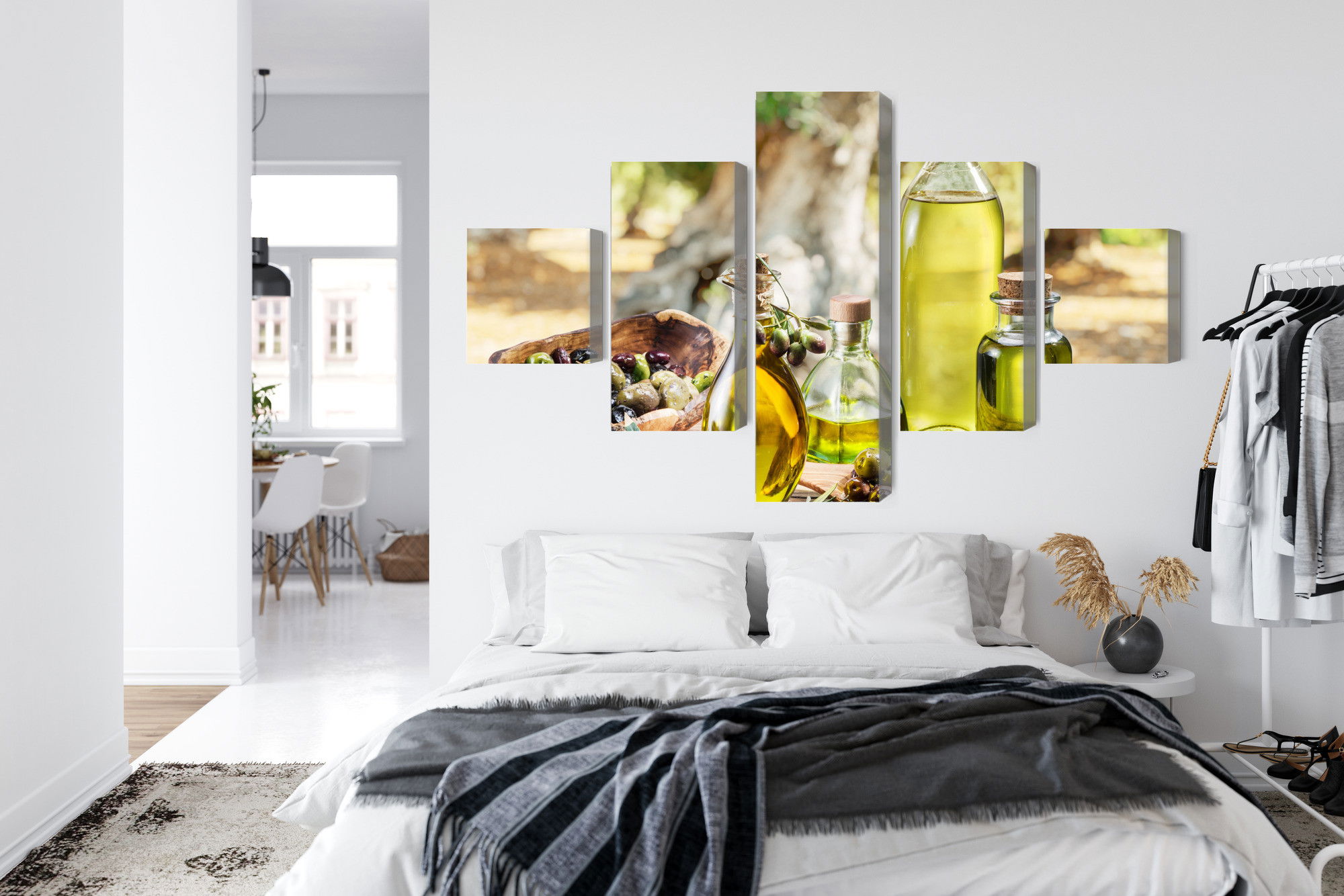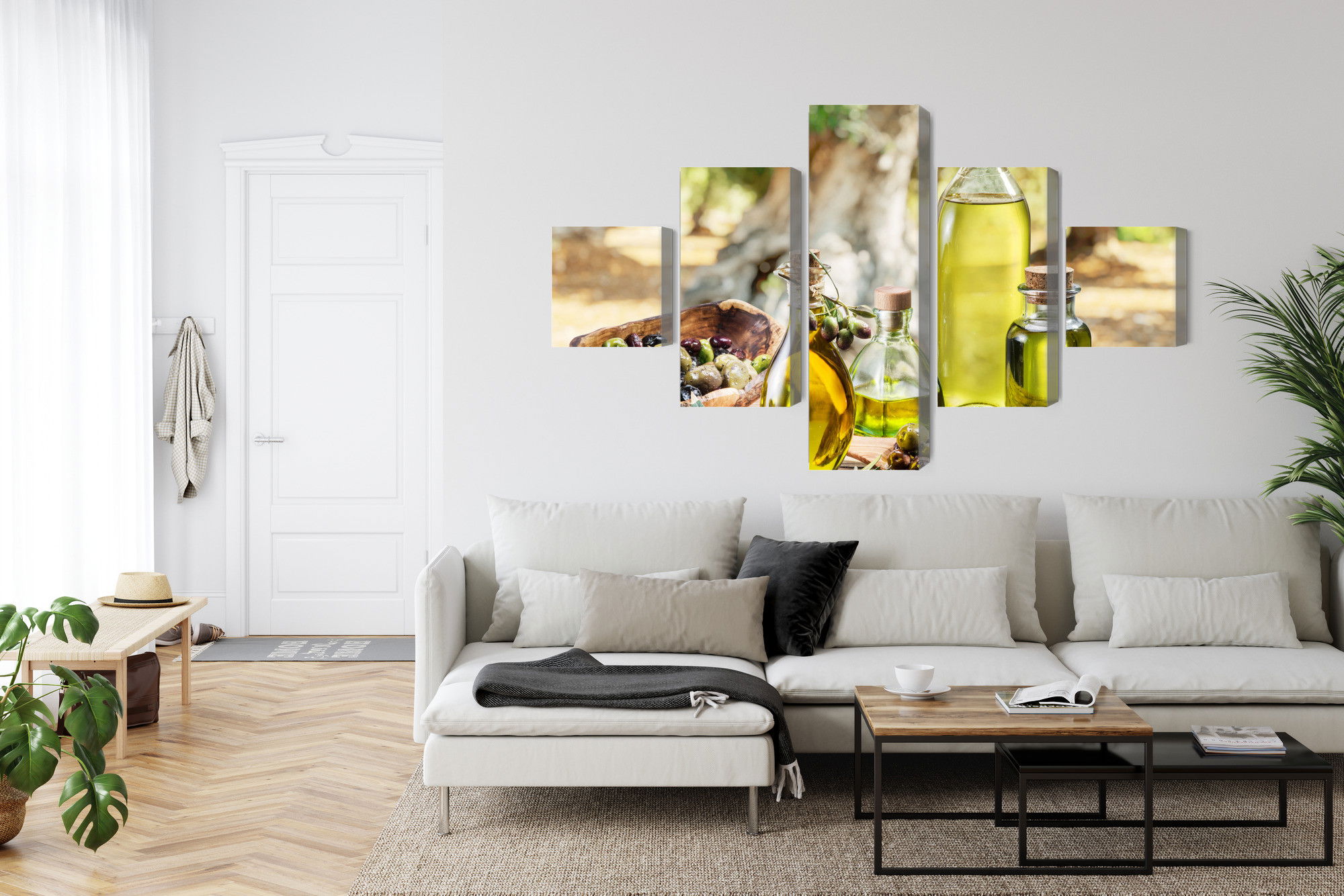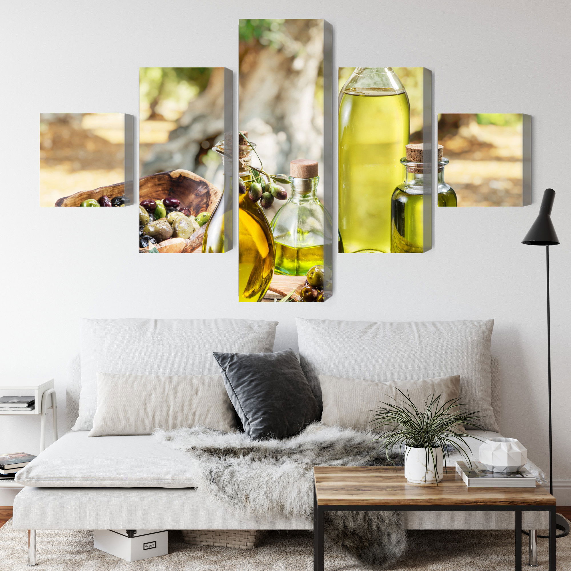 Motivet Oil bottles återges med hög färgprecision och detaljrikedom tack vare HP Latex-teknologi. Trycket sker med vattenbaserade, luktfria och GREENGUARD Gold-certifierade bläck som ger en upplösning på upp till 300 DPI. Färgerna är UV-beständiga och behåller sin styrka även i ljusa rum, vilket gör tavlan lämplig för både hem- och offentliga miljöer.