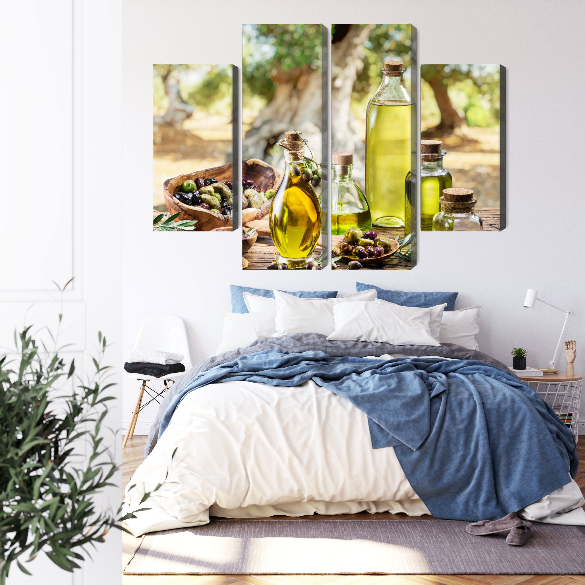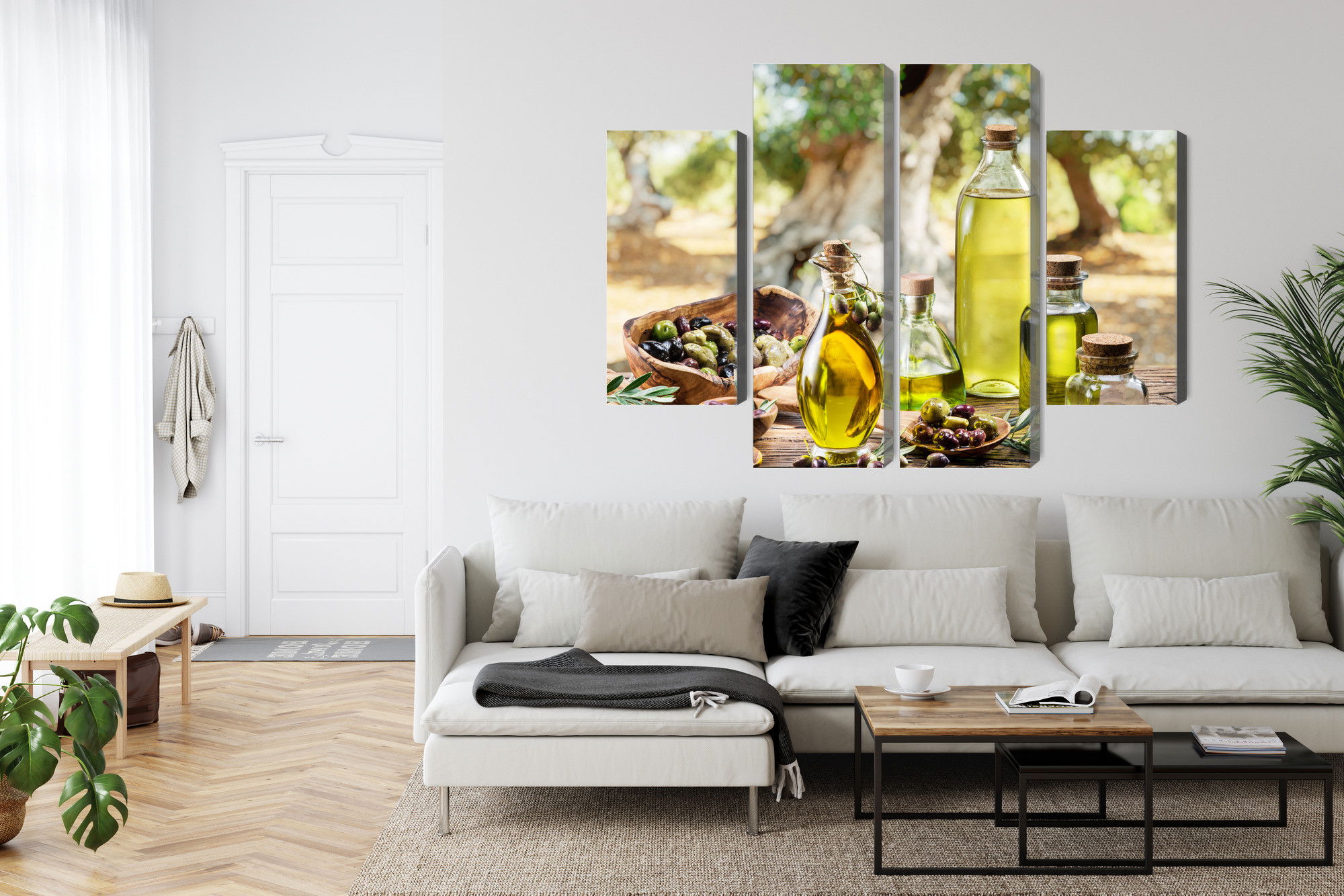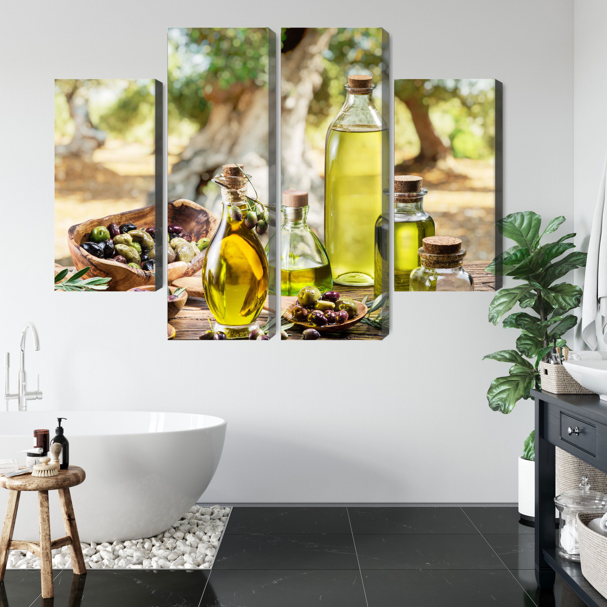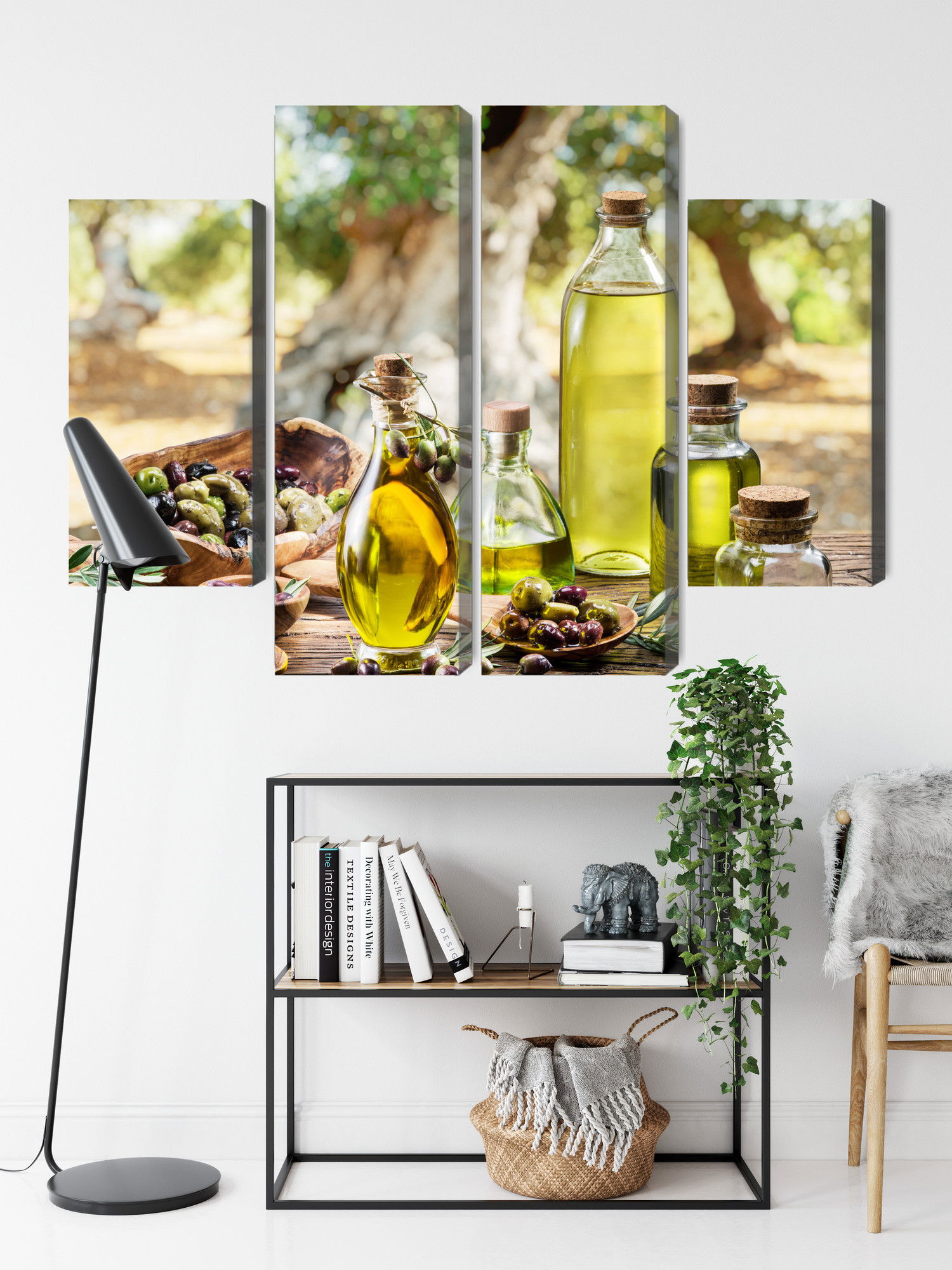 Motivet Oil bottles återges med hög färgprecision och detaljrikedom tack vare HP Latex-teknologi. Trycket sker med vattenbaserade, luktfria och GREENGUARD Gold-certifierade bläck som ger en upplösning på upp till 300 DPI. Färgerna är UV-beständiga och behåller sin styrka även i ljusa rum, vilket gör tavlan lämplig för både hem- och offentliga miljöer.