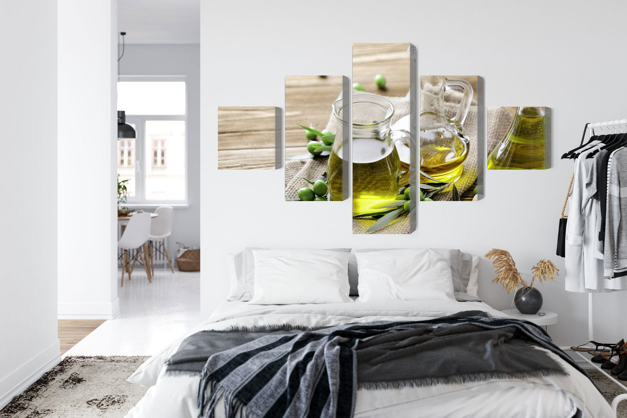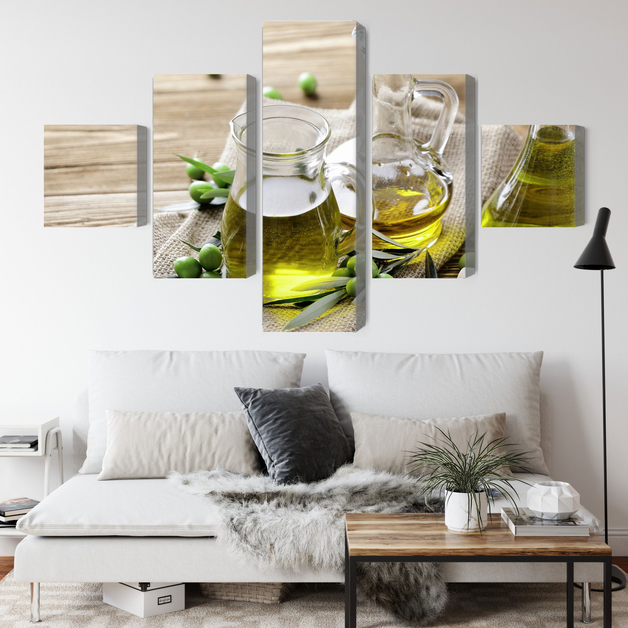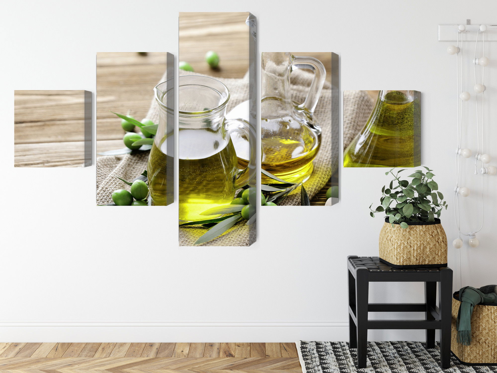 Ljuddämpande tavla – Olive oil with green olives för lugnare rum och mjukare akustik