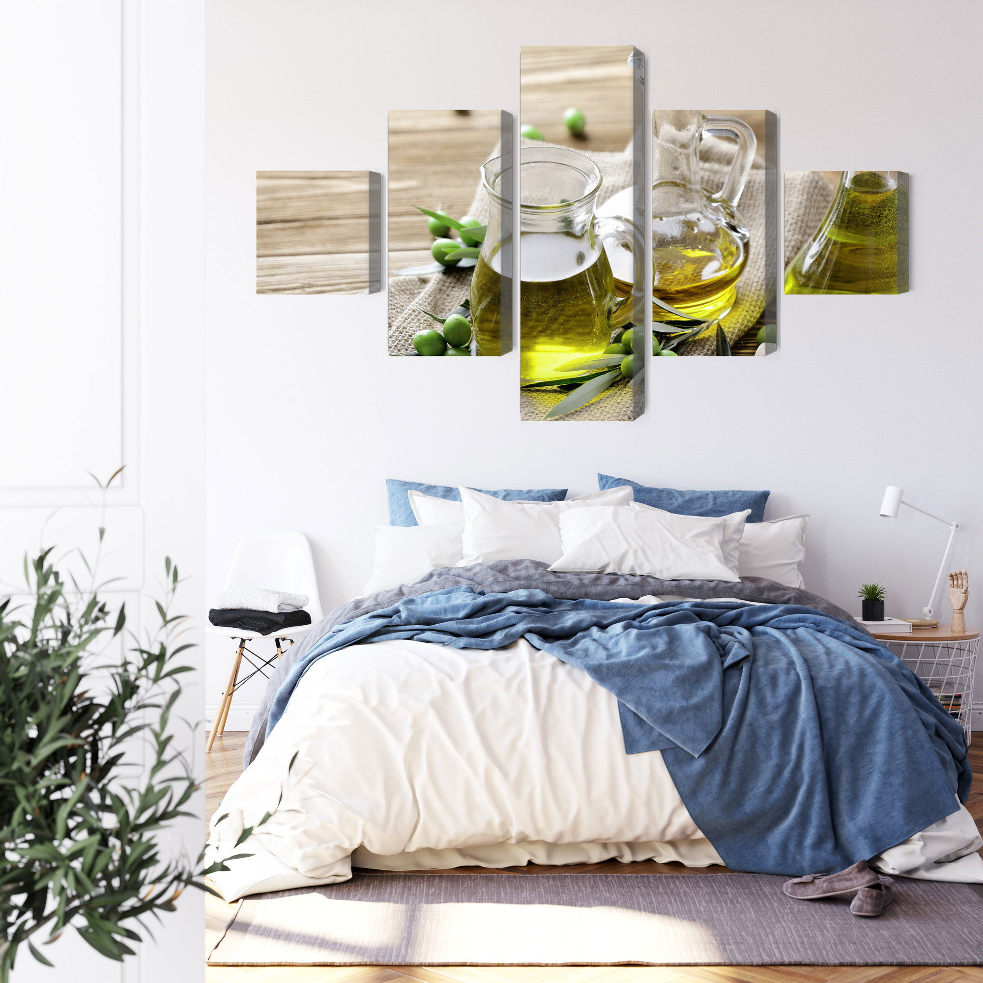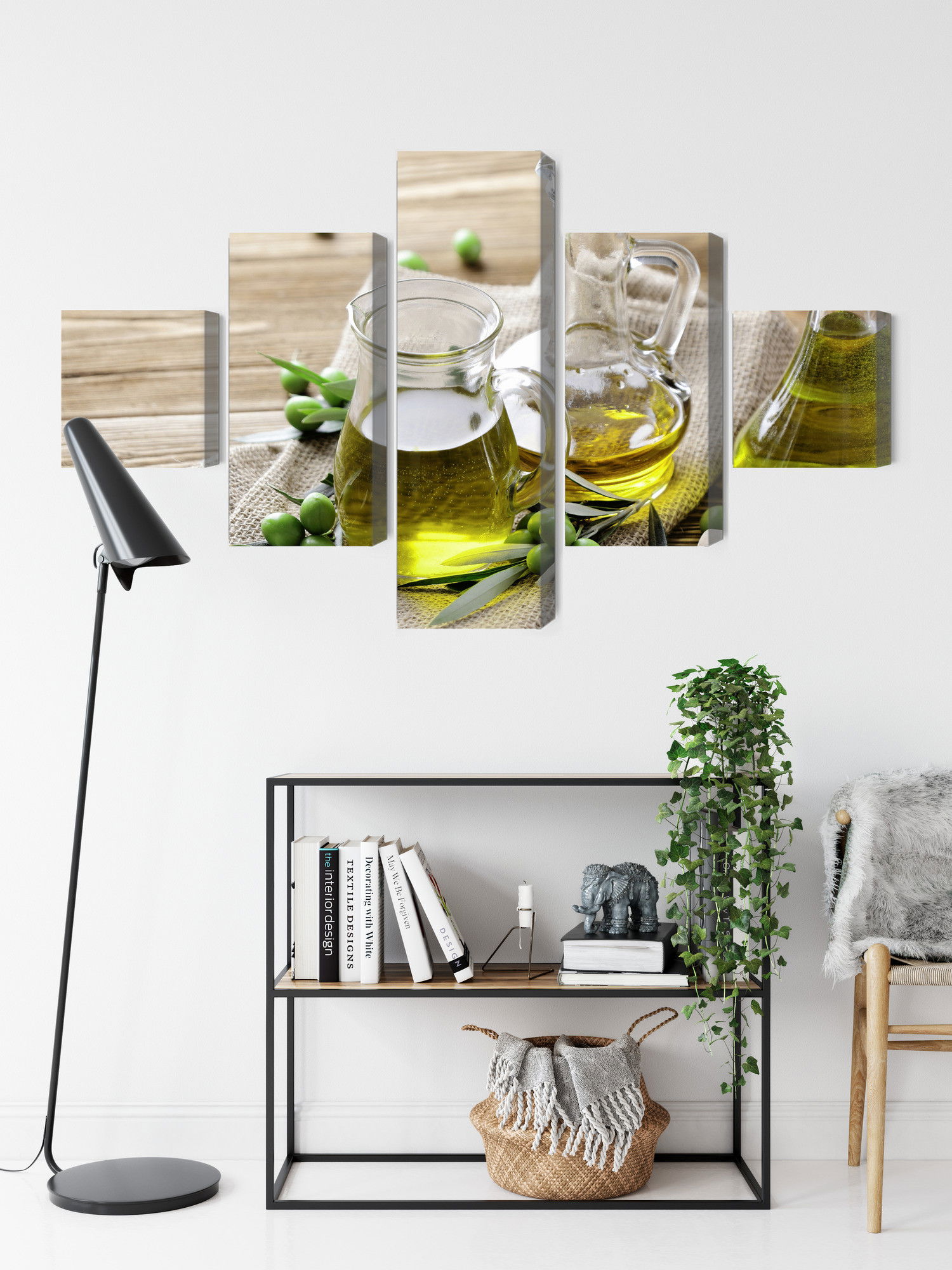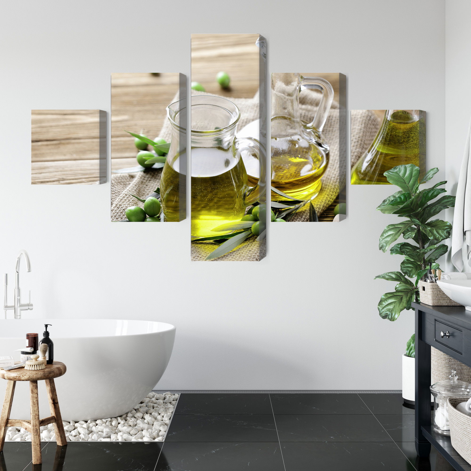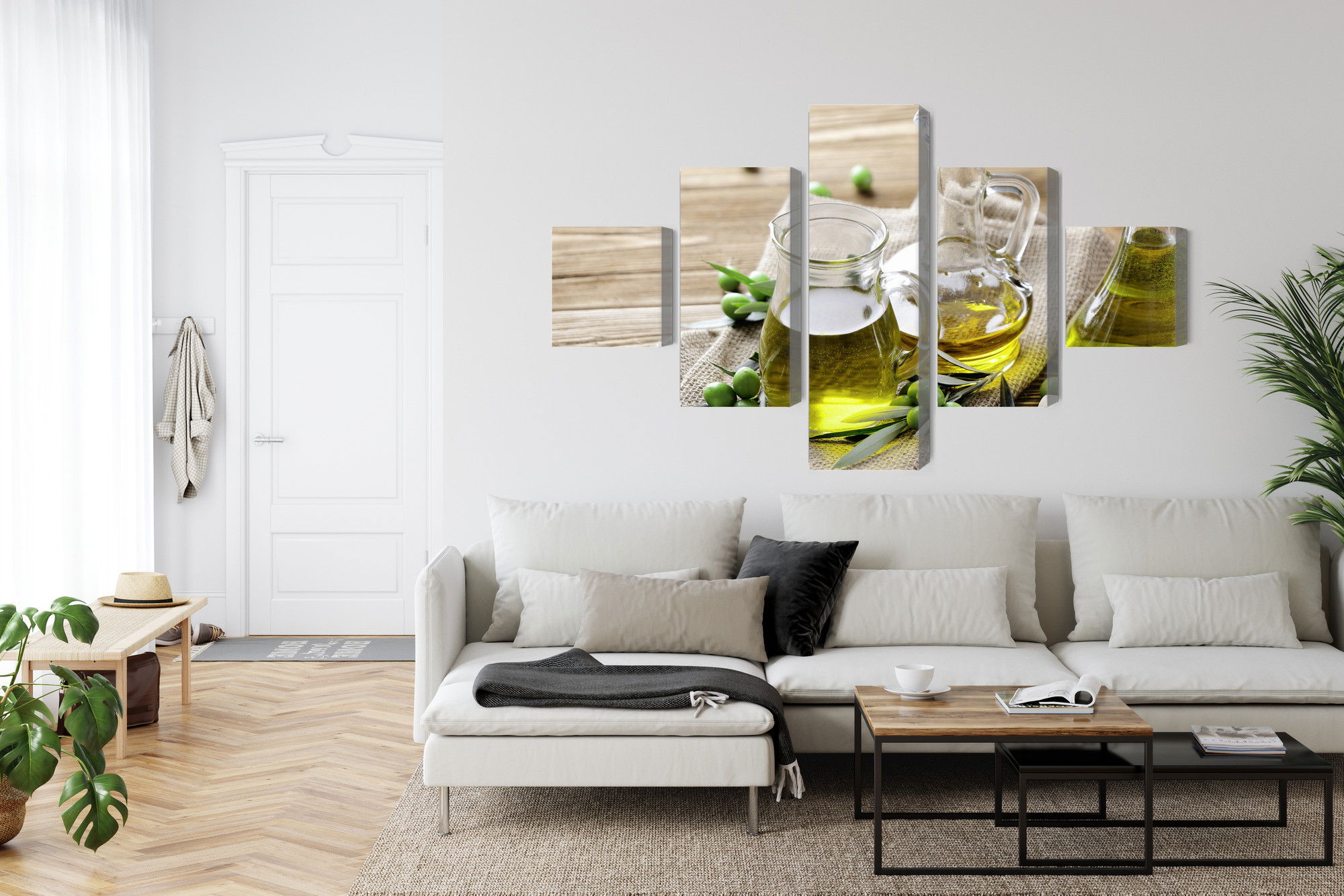 Ljuddämpande tavla – Olive oil with green olives för lugnare rum och mjukare akustik