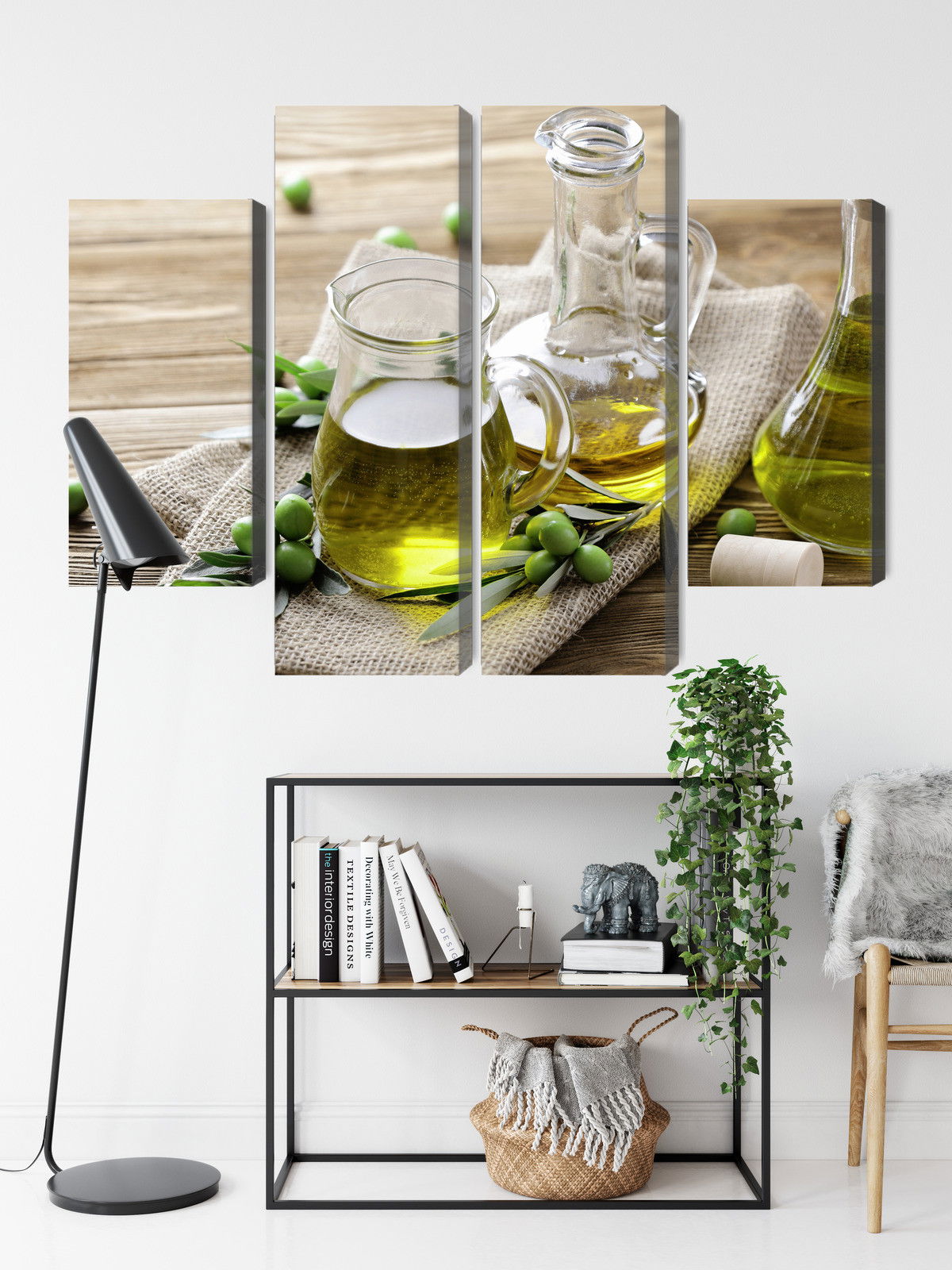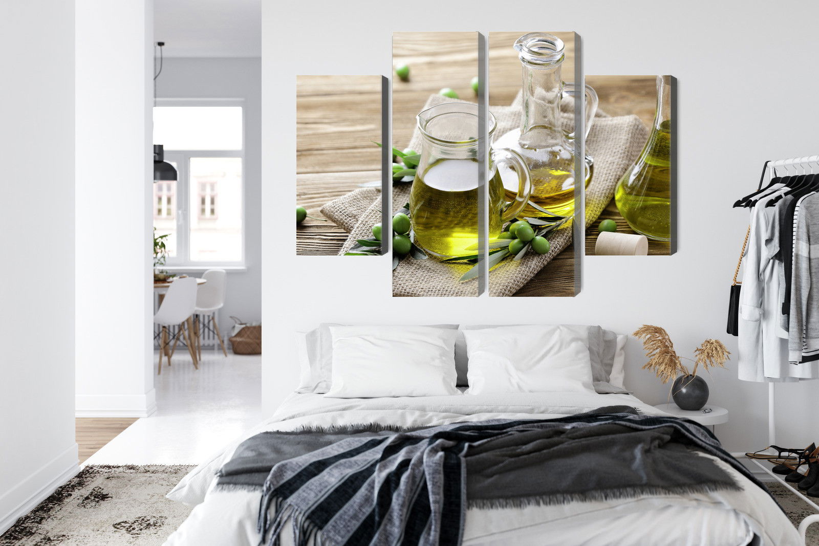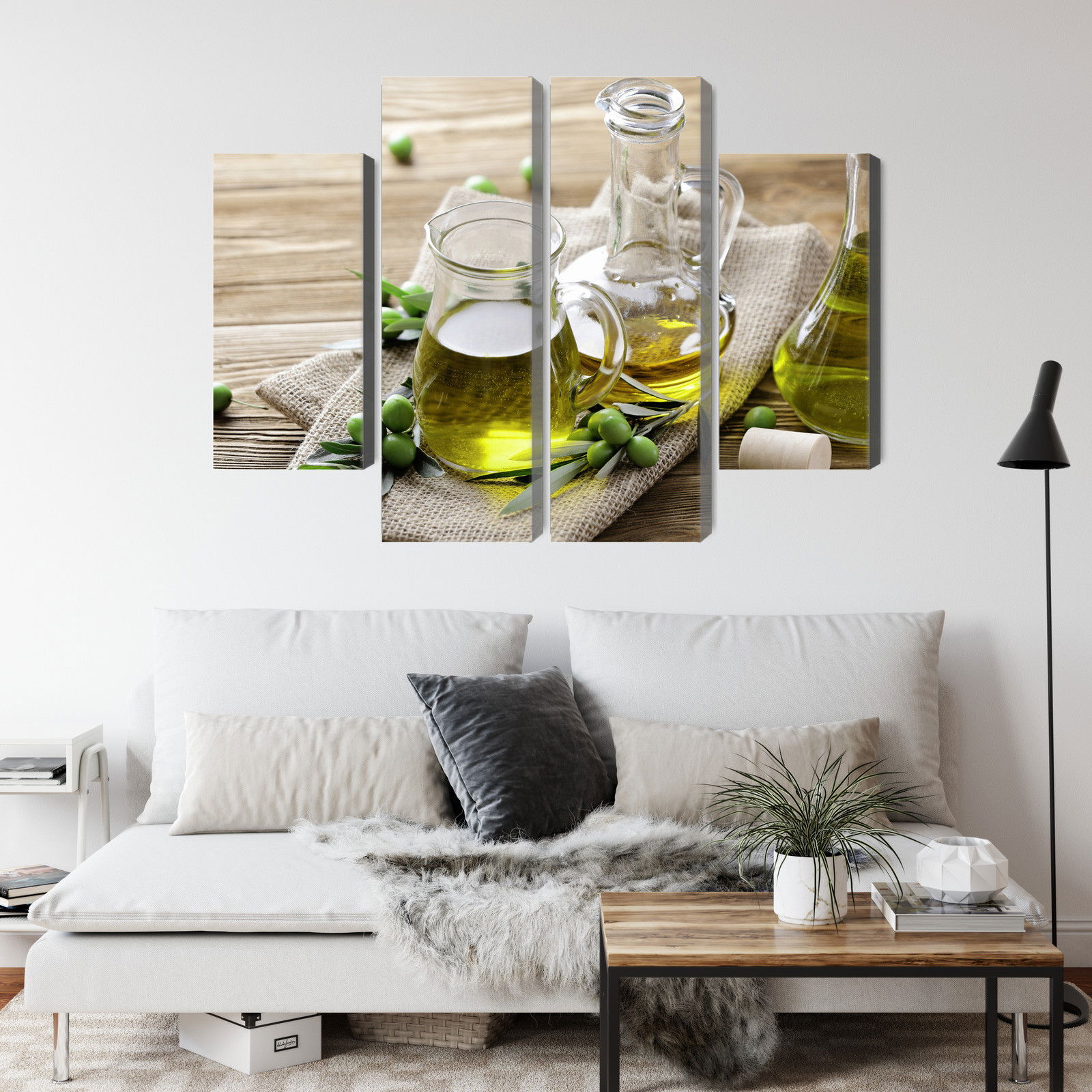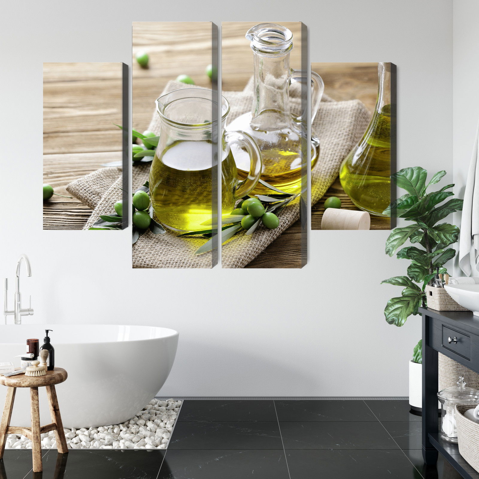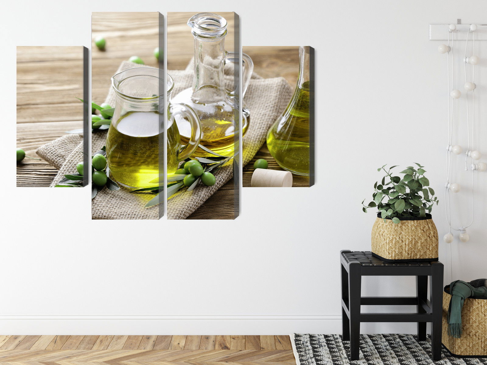 Ljuddämpande tavla – Olive oil with green olives för lugnare rum och mjukare akustik