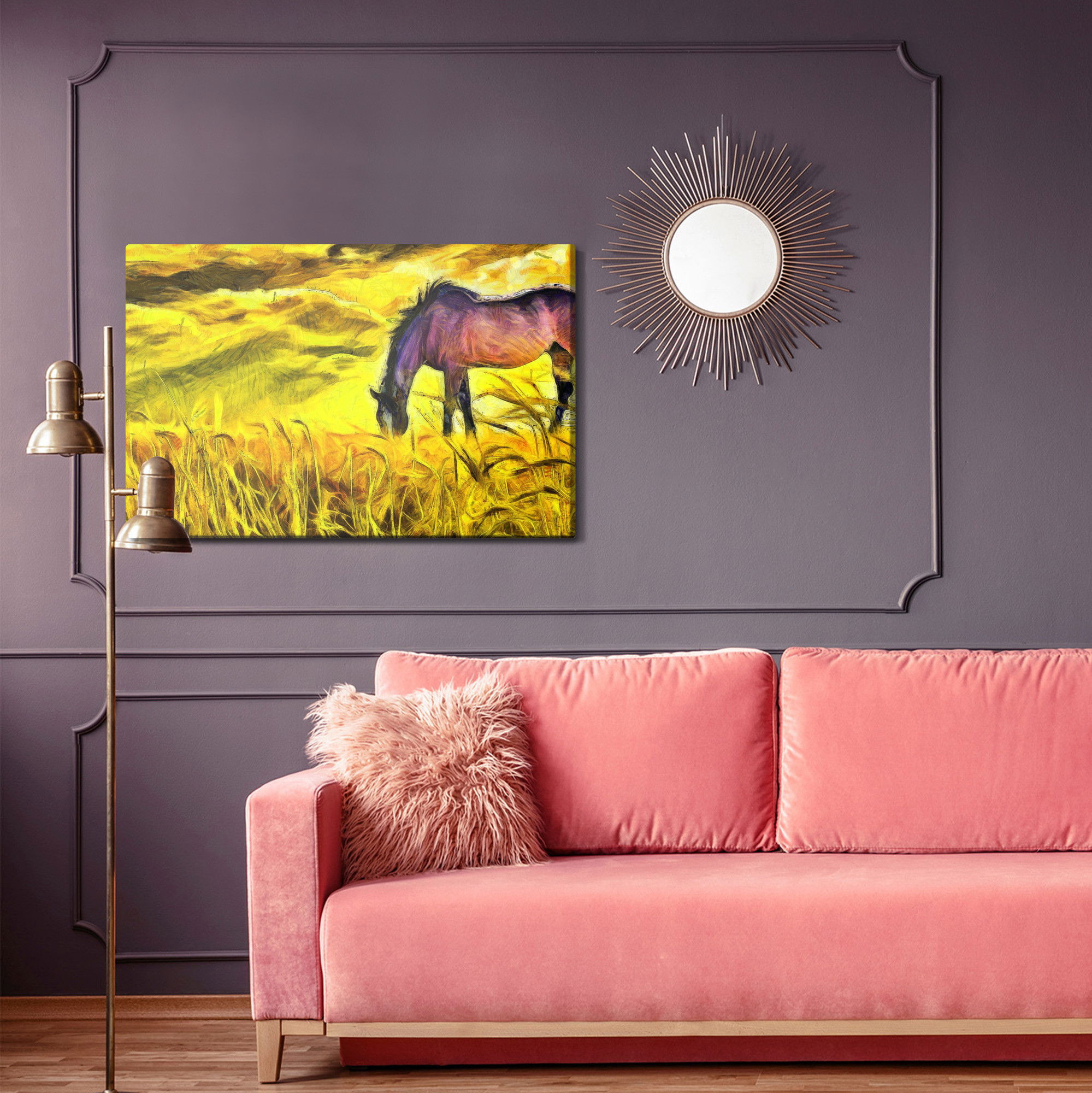 Ljuddämpande tavla – Painted horse in the field för lugnare rum och mjukare akustik