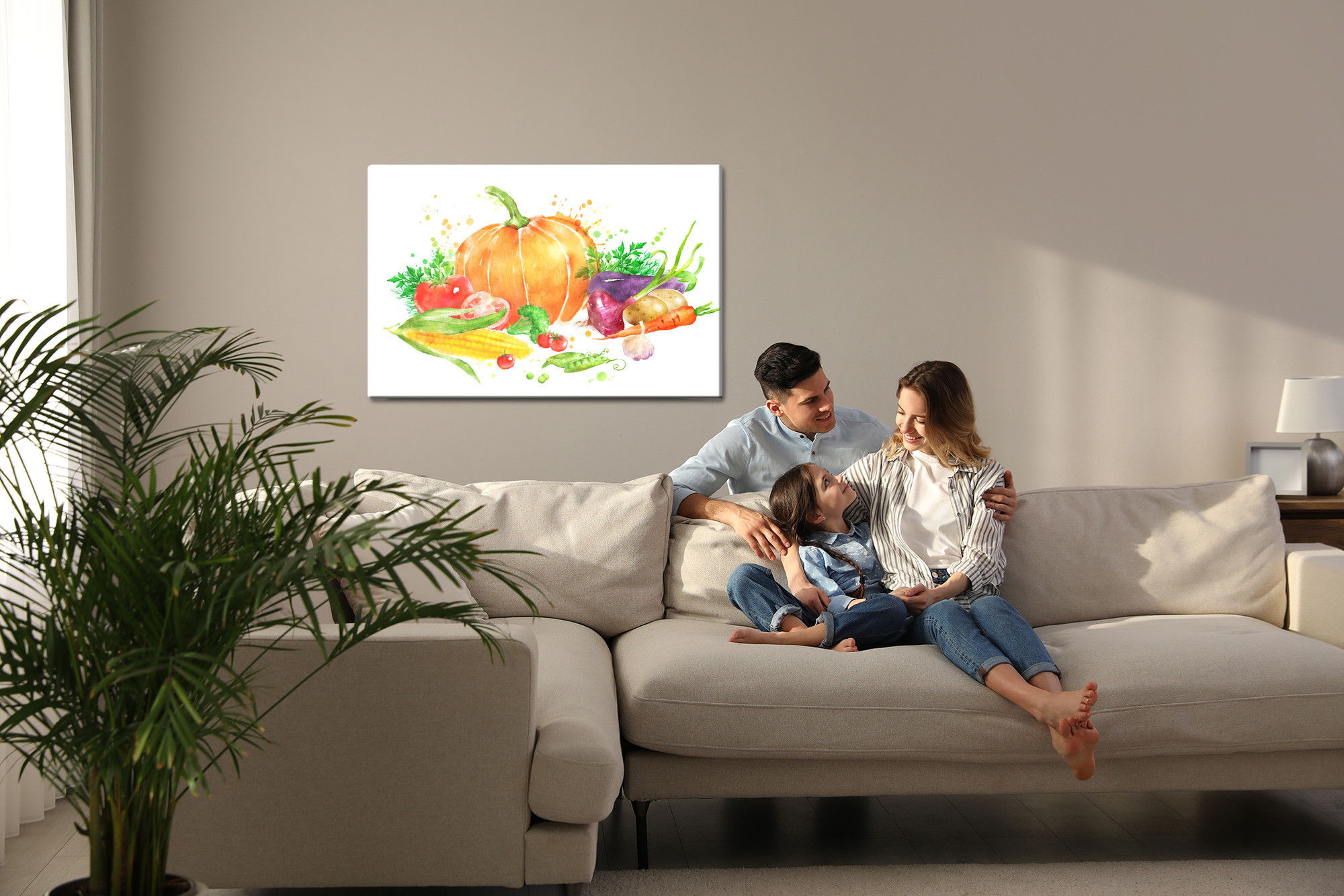 Motivet Pumpkin with vegetables återges med hög färgprecision och detaljrikedom tack vare HP Latex-teknologi. Trycket sker med vattenbaserade, luktfria och GREENGUARD Gold-certifierade bläck som ger en upplösning på upp till 300 DPI. Färgerna är UV-beständiga och behåller sin styrka även i ljusa rum, vilket gör tavlan lämplig för både hem- och offentliga miljöer.