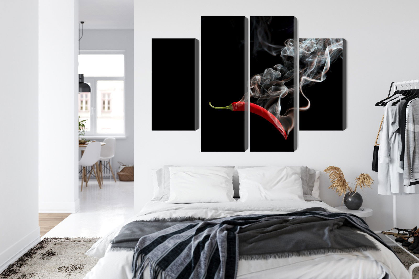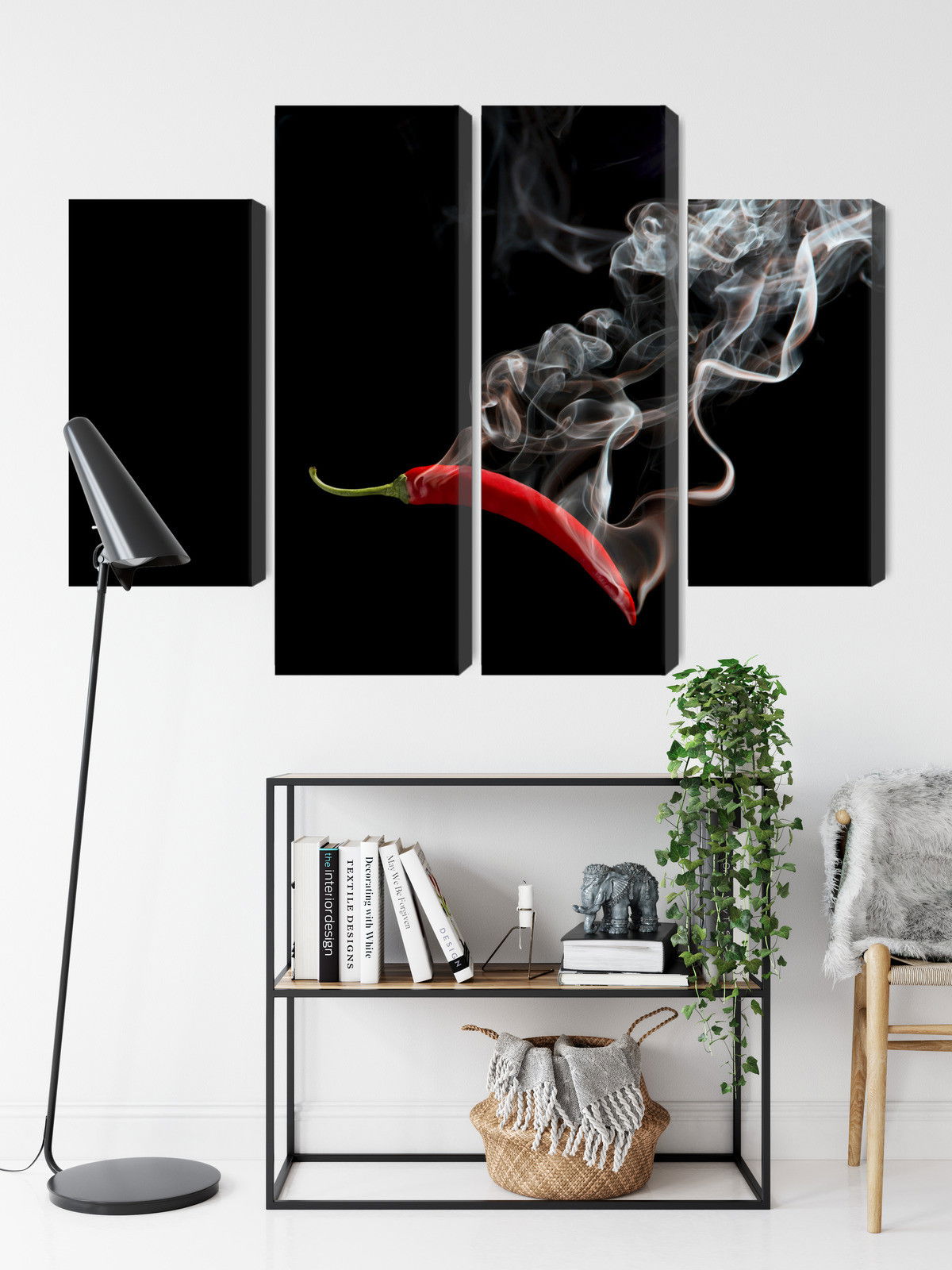 Ljuddämpande tavla – Red chili with smoke för lugnare rum och mjukare akustik