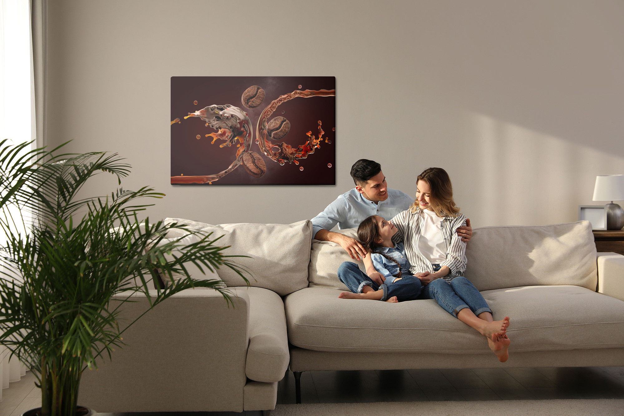 Motivet Roasted arabica beans återges med hög färgprecision och detaljrikedom tack vare HP Latex-teknologi. Trycket sker med vattenbaserade, luktfria och GREENGUARD Gold-certifierade bläck som ger en upplösning på upp till 300 DPI. Färgerna är UV-beständiga och behåller sin styrka även i ljusa rum, vilket gör tavlan lämplig för både hem- och offentliga miljöer.
