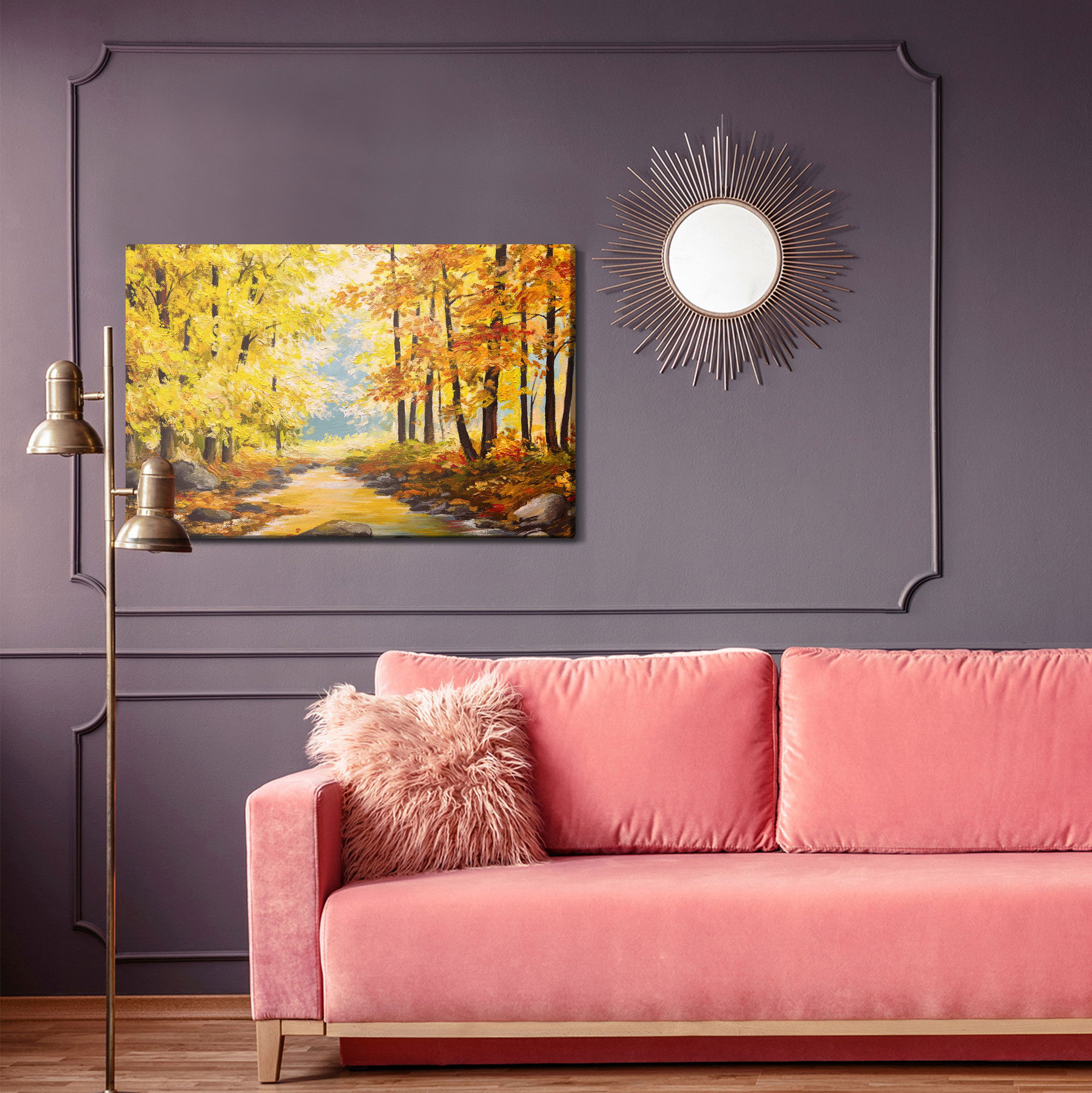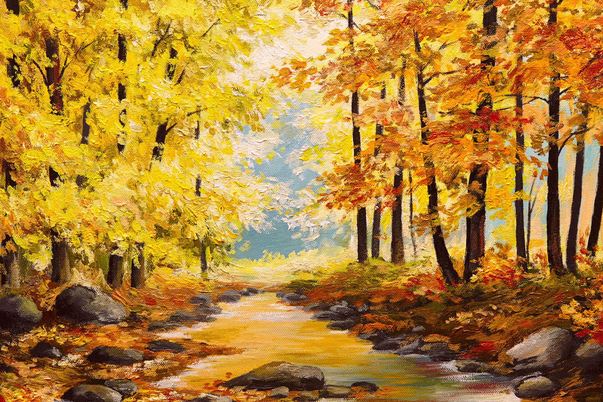 Ljuddämpande tavla – Rocks in the autumn forest för lugnare rum och mjukare akustik