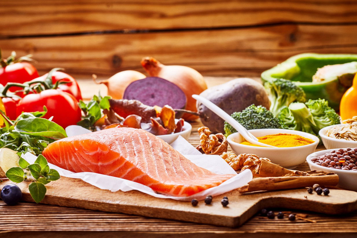 Ljuddämpande tavla – Salmon among vegetables för lugnare rum och mjukare akustik