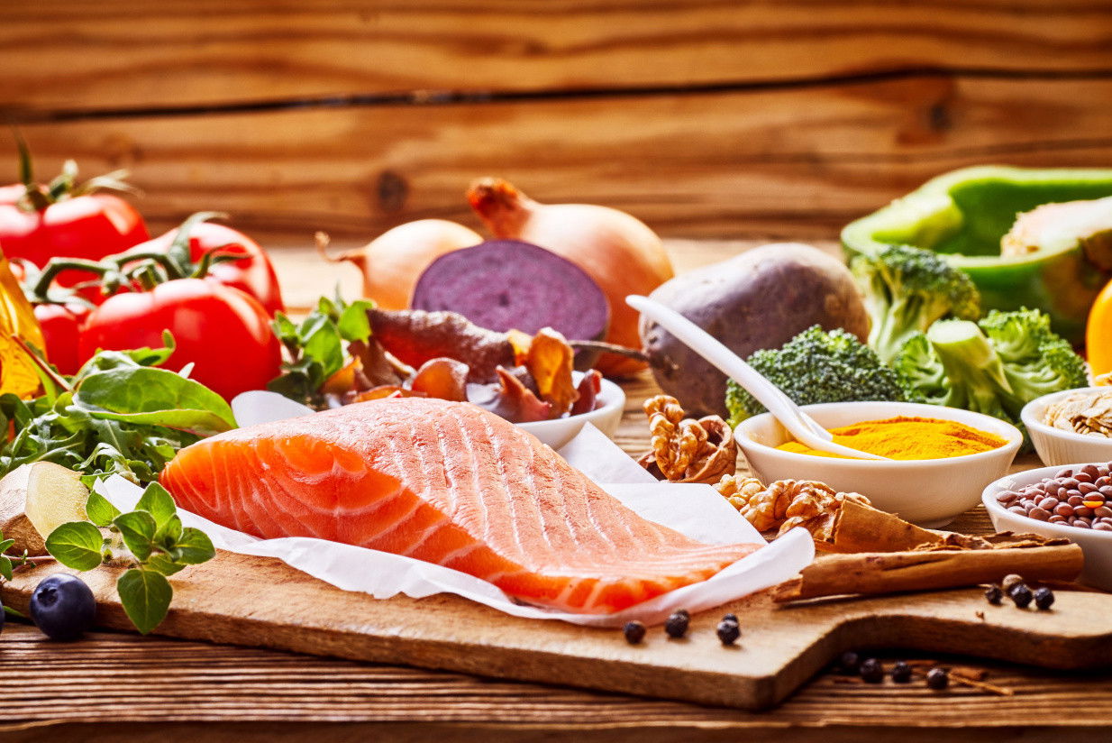 Ljuddämpande tavla – Salmon among vegetables för lugnare rum och mjukare akustik