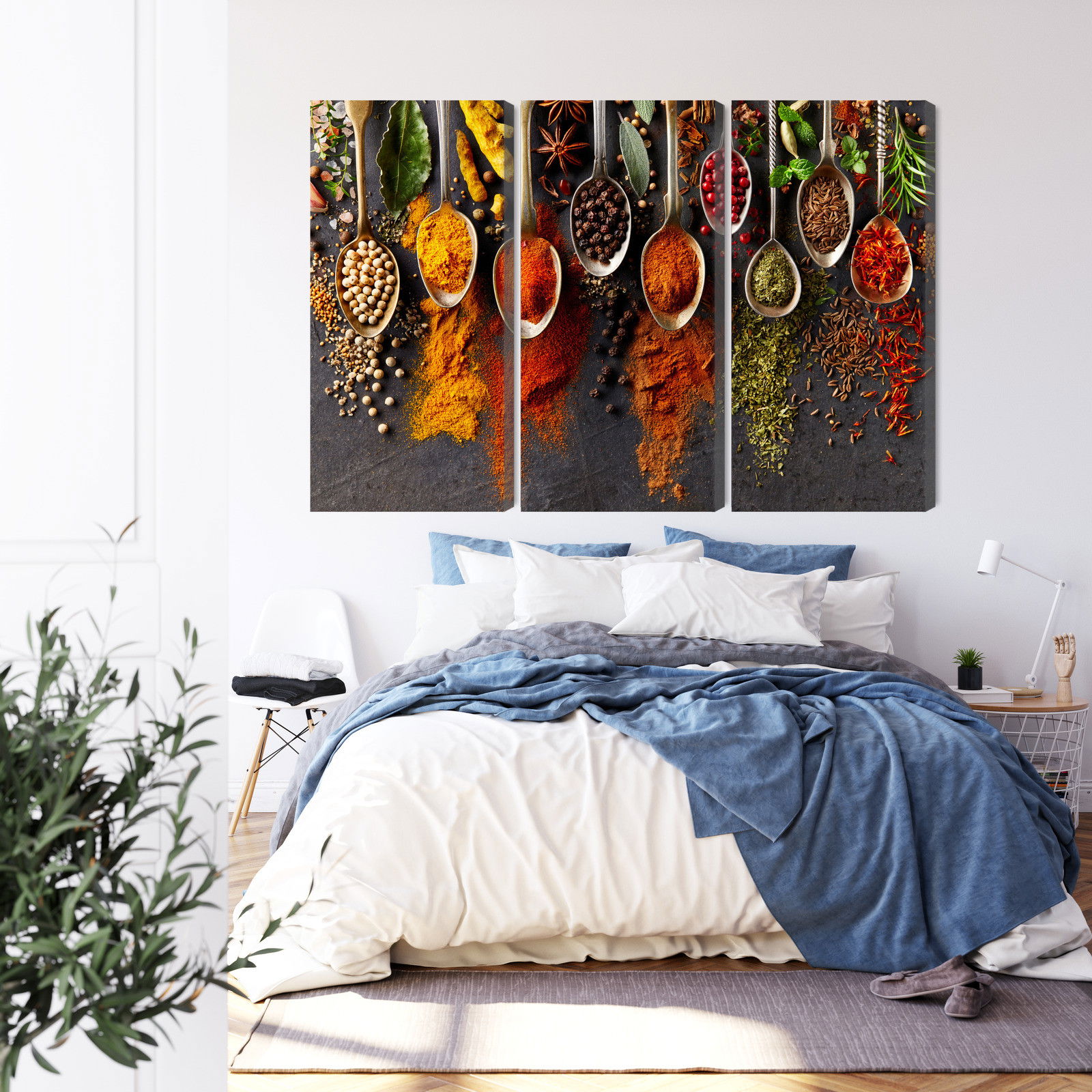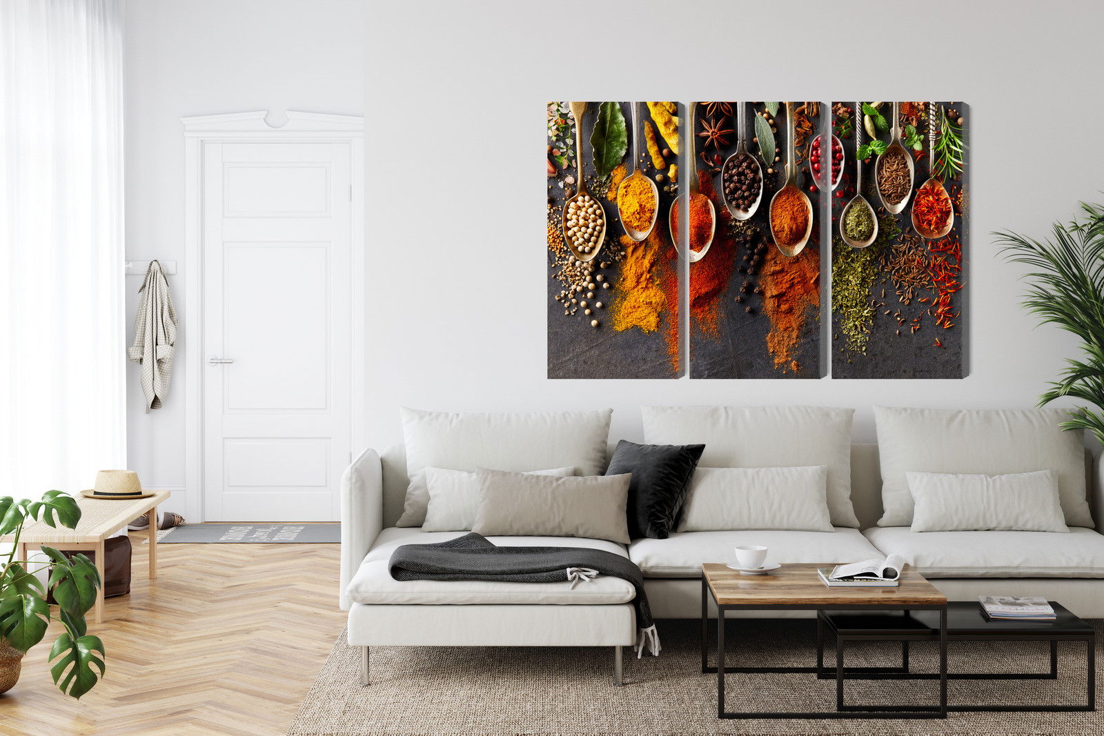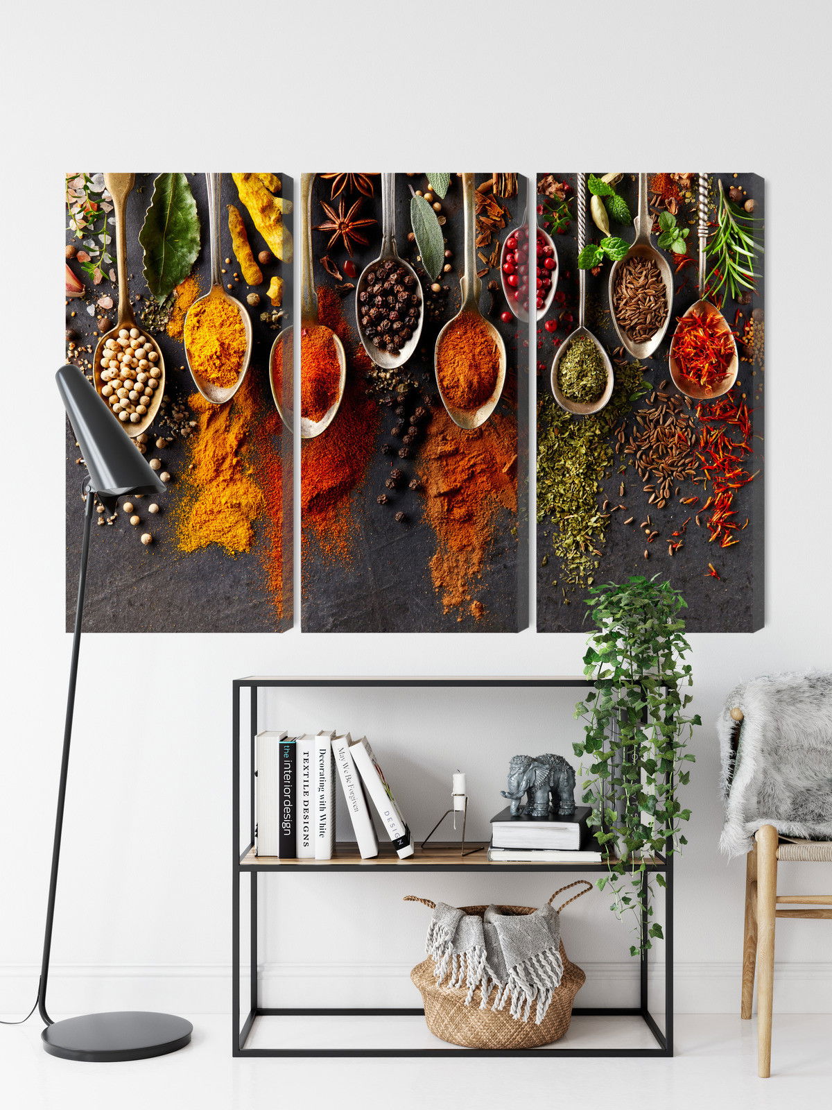 SilentDirects ljuddämpande tavla Spices on a black background kombinerar ett högupplöst motiv med avancerad akustikteknik. Varje tavla monteras i Sverige och bygger på en stabil canvastavla med fururam, där insidan av ramen fylls med en ljudabsorberande kärna av återvunnen polyester. Konstruktionen gör tavlan till ett både estetiskt och funktionellt inslag i rummet.