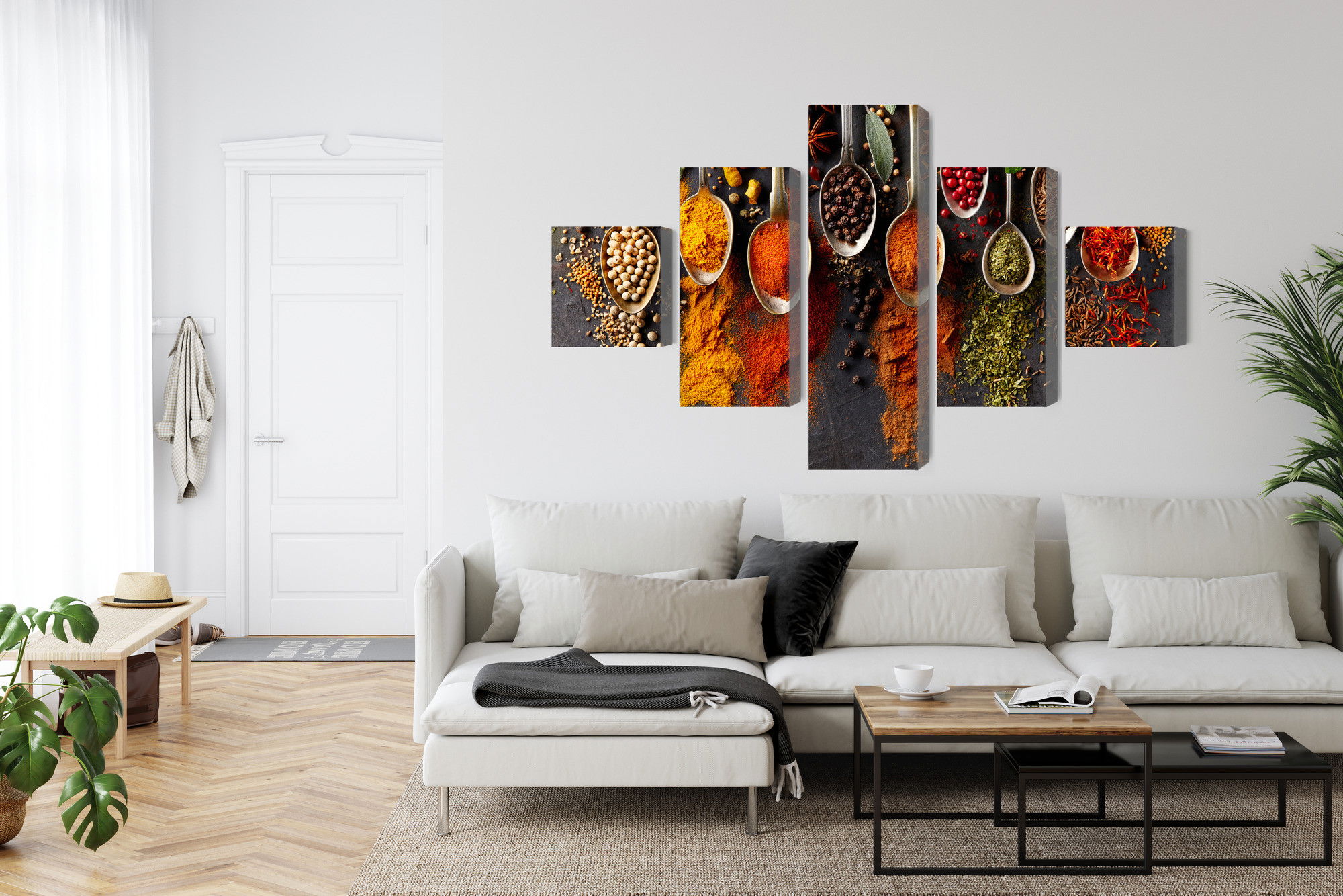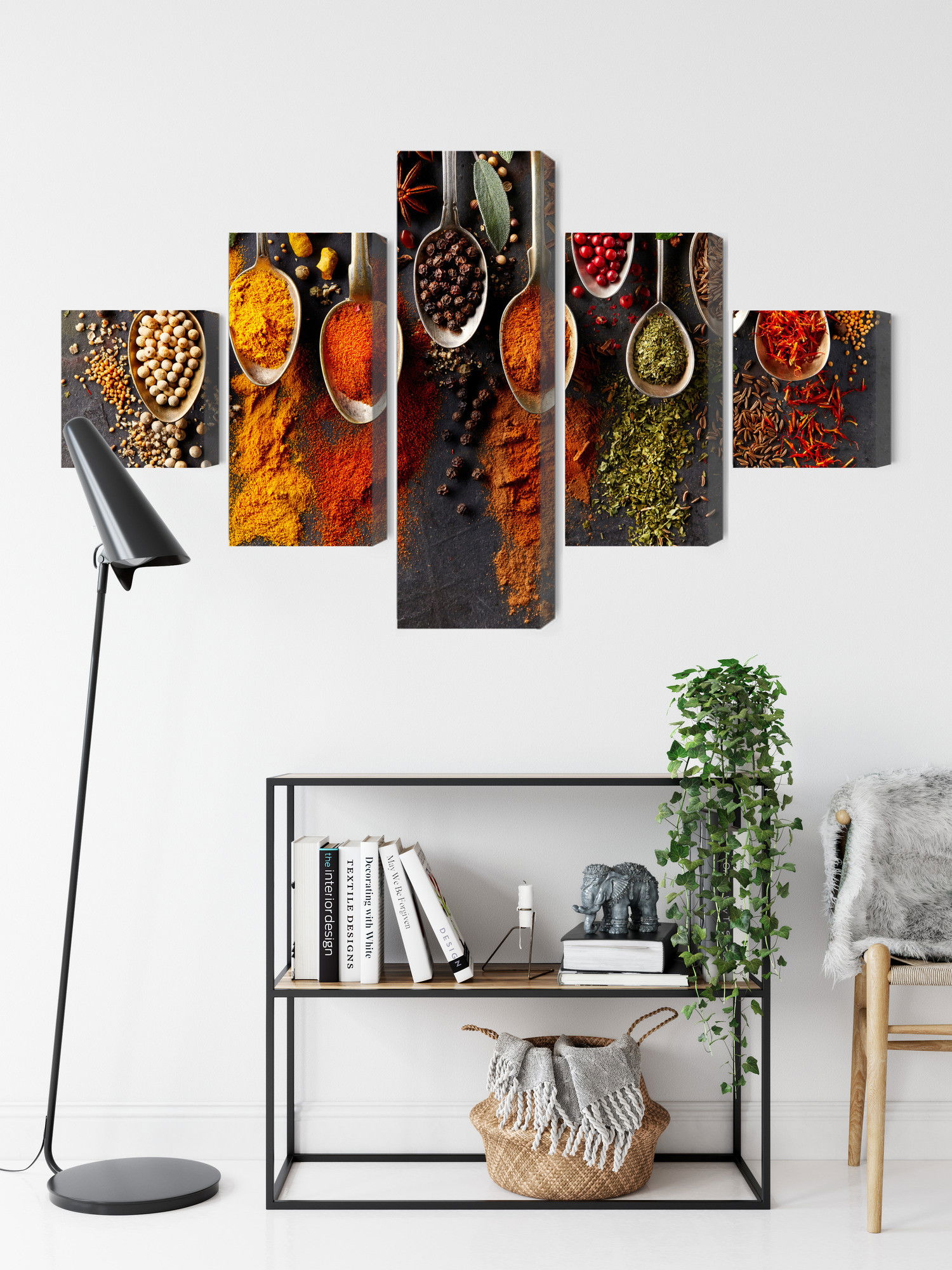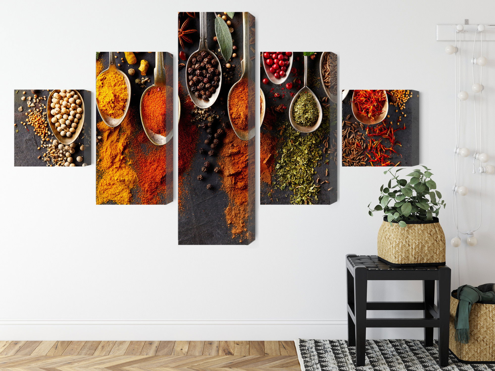 Motivet Spices on a black background återges med hög färgprecision och detaljrikedom tack vare HP Latex-teknologi. Trycket sker med vattenbaserade, luktfria och GREENGUARD Gold-certifierade bläck som ger en upplösning på upp till 300 DPI. Färgerna är UV-beständiga och behåller sin styrka även i ljusa rum, vilket gör tavlan lämplig för både hem- och offentliga miljöer.
