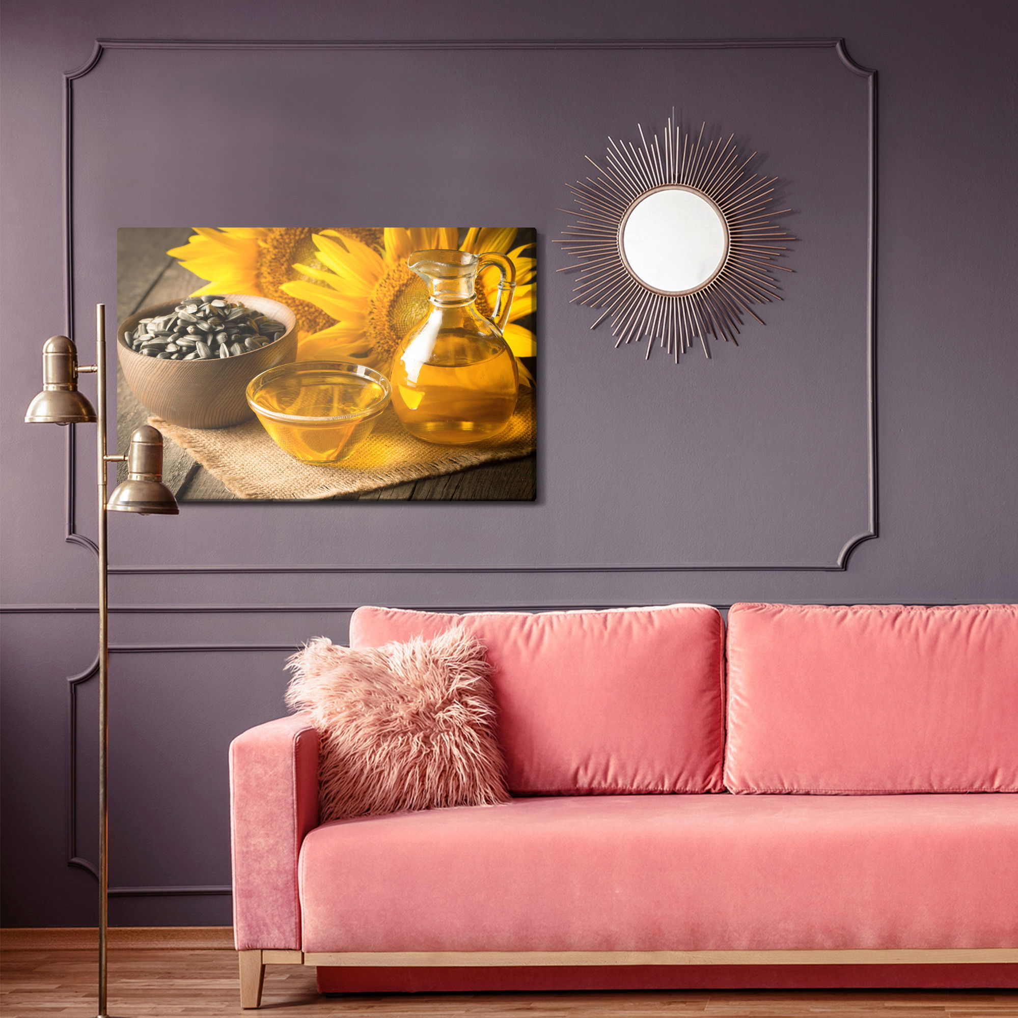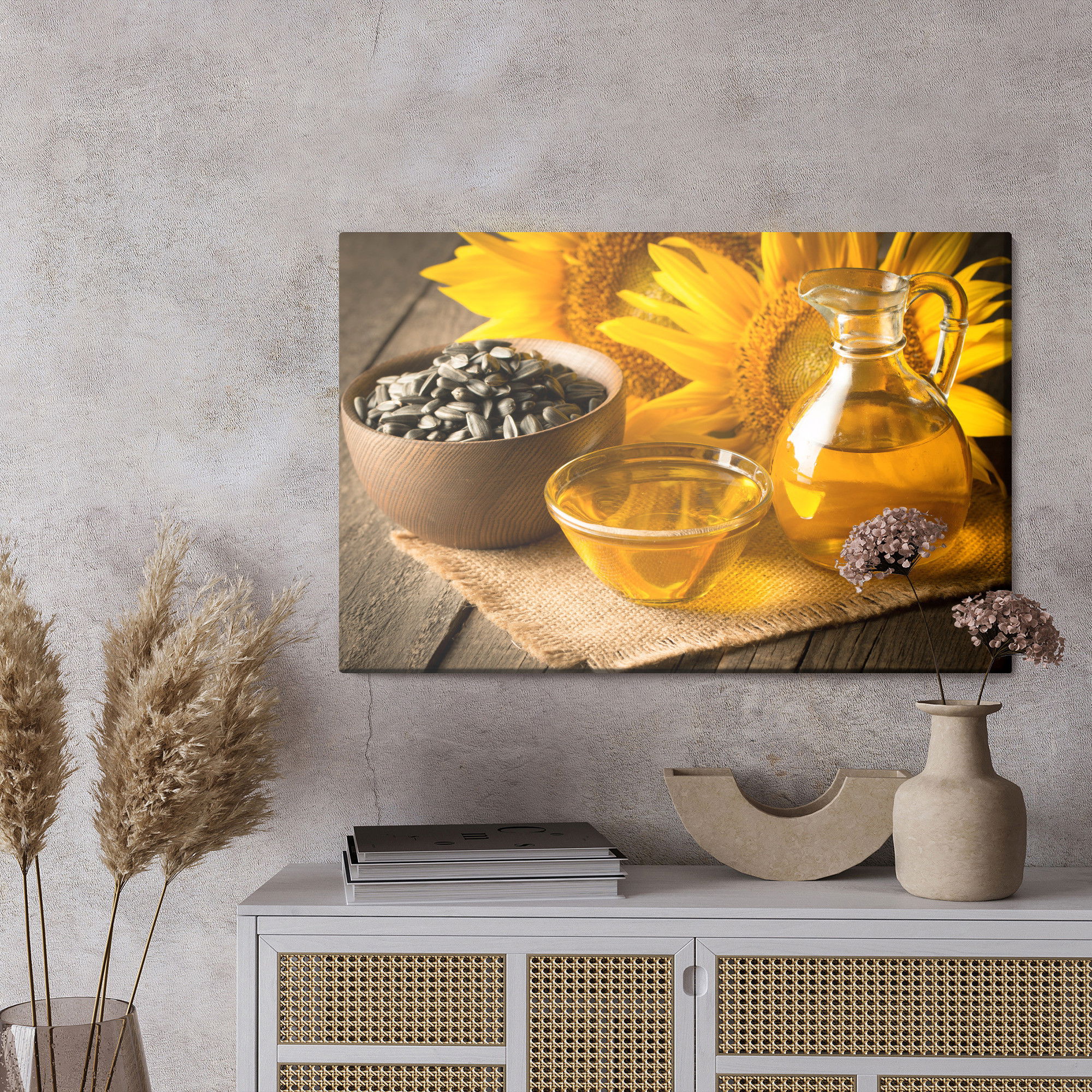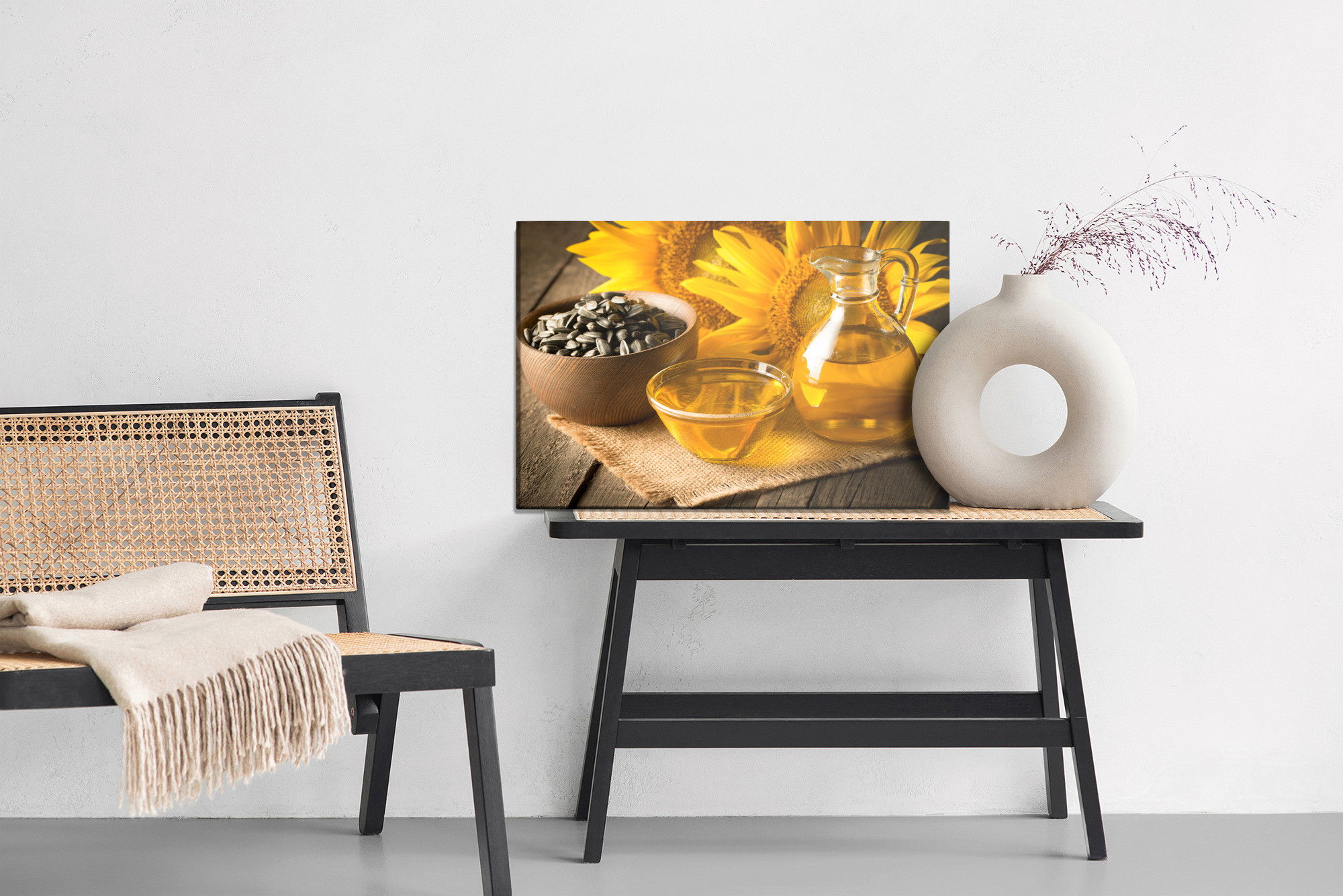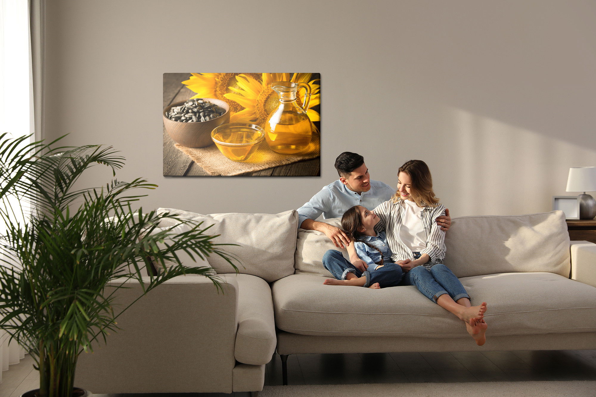 Motivet Sunflower oil återges med hög färgprecision och detaljrikedom tack vare HP Latex-teknologi. Trycket sker med vattenbaserade, luktfria och GREENGUARD Gold-certifierade bläck som ger en upplösning på upp till 300 DPI. Färgerna är UV-beständiga och behåller sin styrka även i ljusa rum, vilket gör tavlan lämplig för både hem- och offentliga miljöer.