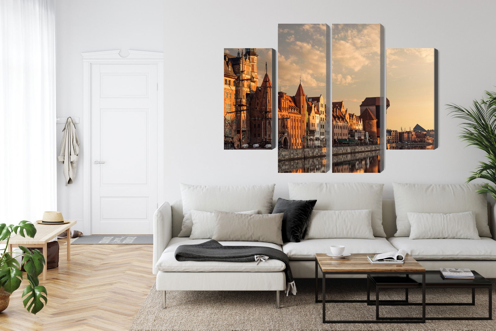 Ljuddämpande tavla – The port of gdansk at sunset för lugnare rum och mjukare akustik