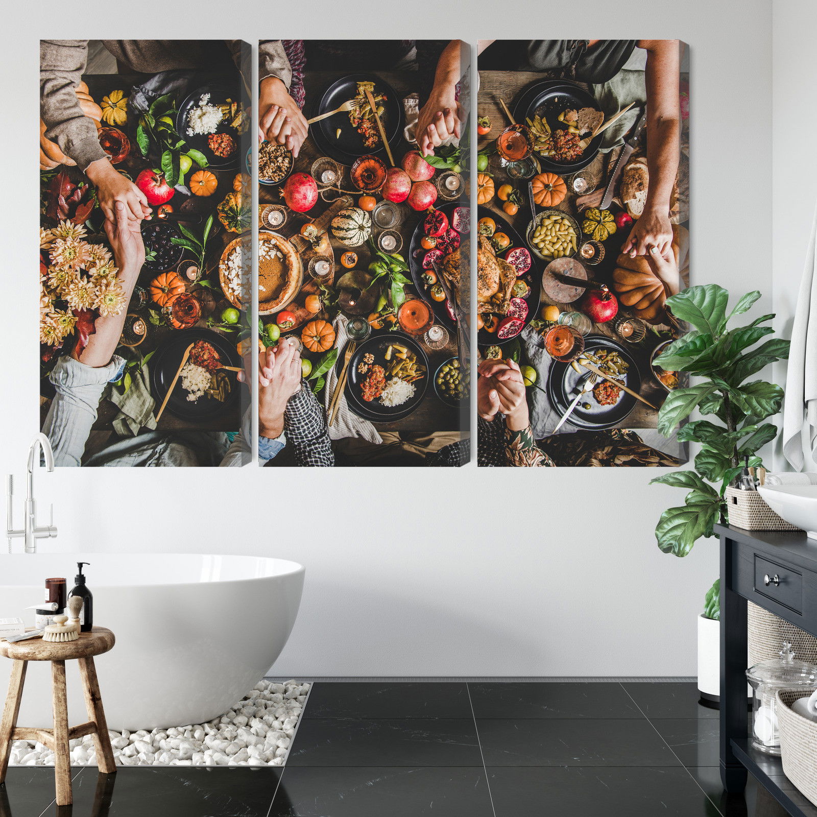 Varje tavla monteras på en massiv fururam. Format upp till 70×50 cm har en ram på 15 mm, medan format från 90×60 cm och uppåt har en ram på 20 mm. Den exakta dukspänningen gör att tavlan håller sin form över tid. Motivet The table was set abundantly trycks runt hela ramen vilket ger ett stilrent galleriuttryck där tavlan är lika vacker från sidan som framifrån. Kombinationen av rak dukspänning, rena linjer och korrekt tryck ger en professionell finish.