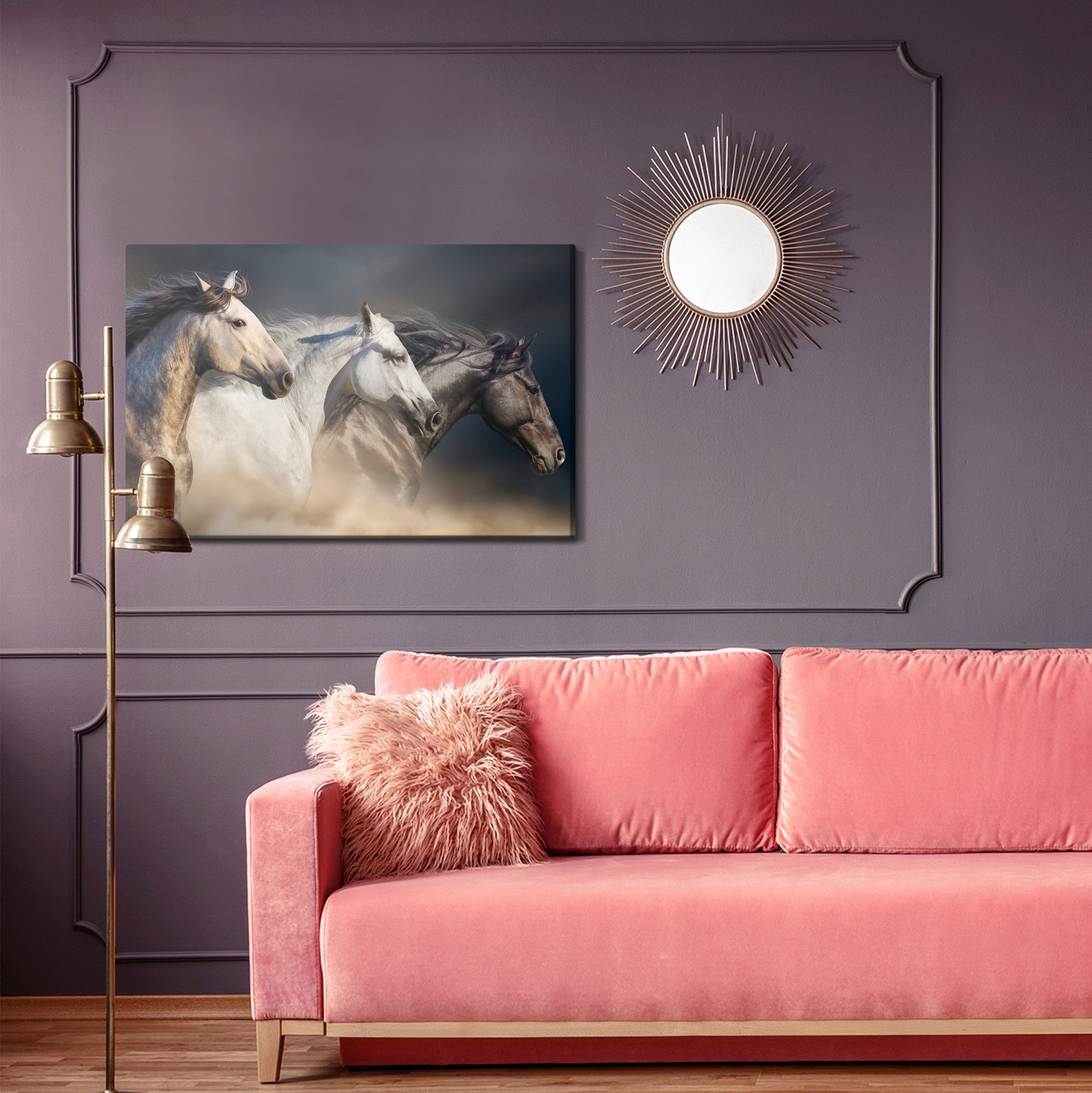 Ljuddämpande tavla – Three horses at a gallop för lugnare rum och mjukare akustik