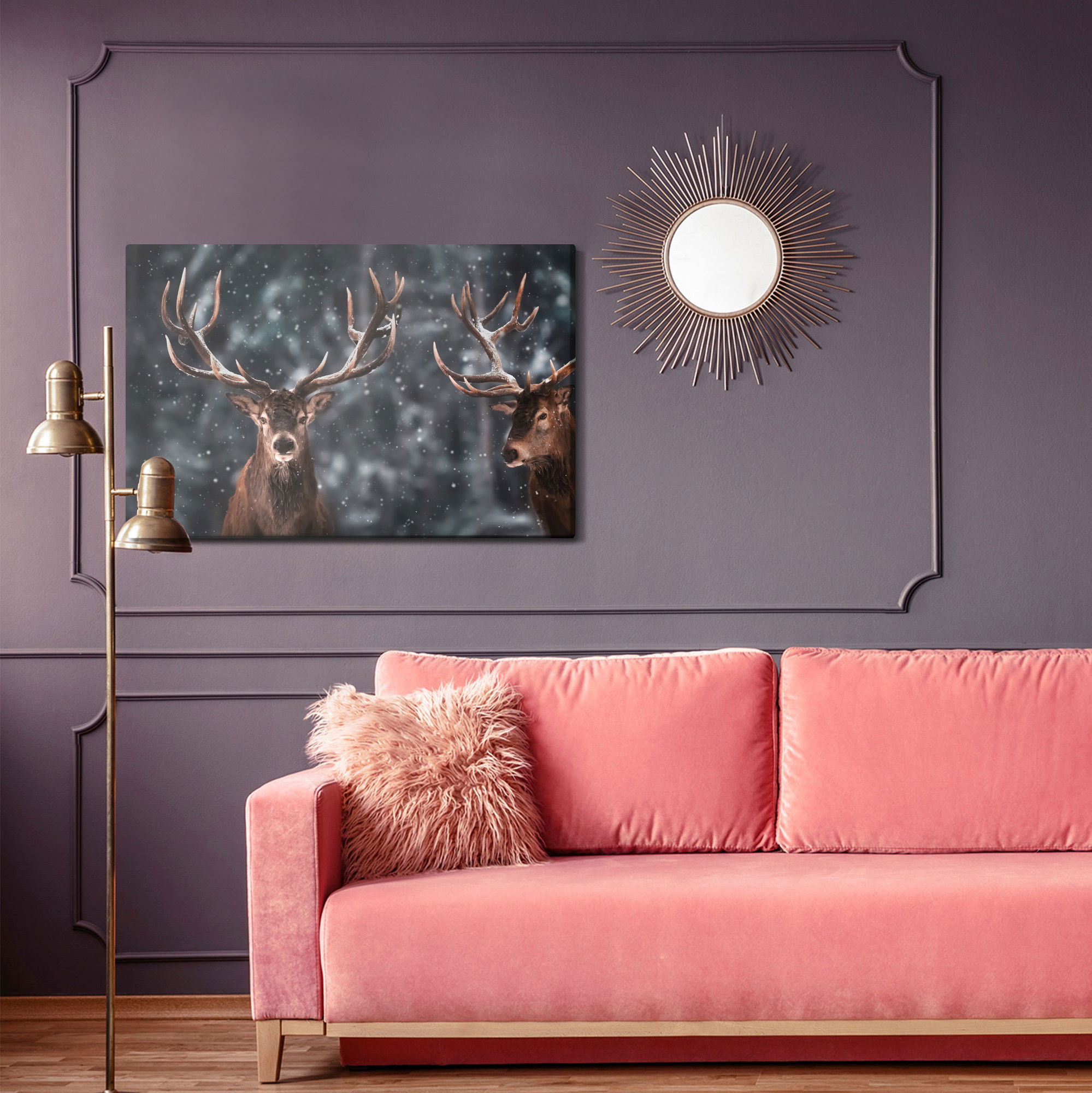 Ljuddämpande tavla – Two magnificent stags för lugnare rum och mjukare akustik