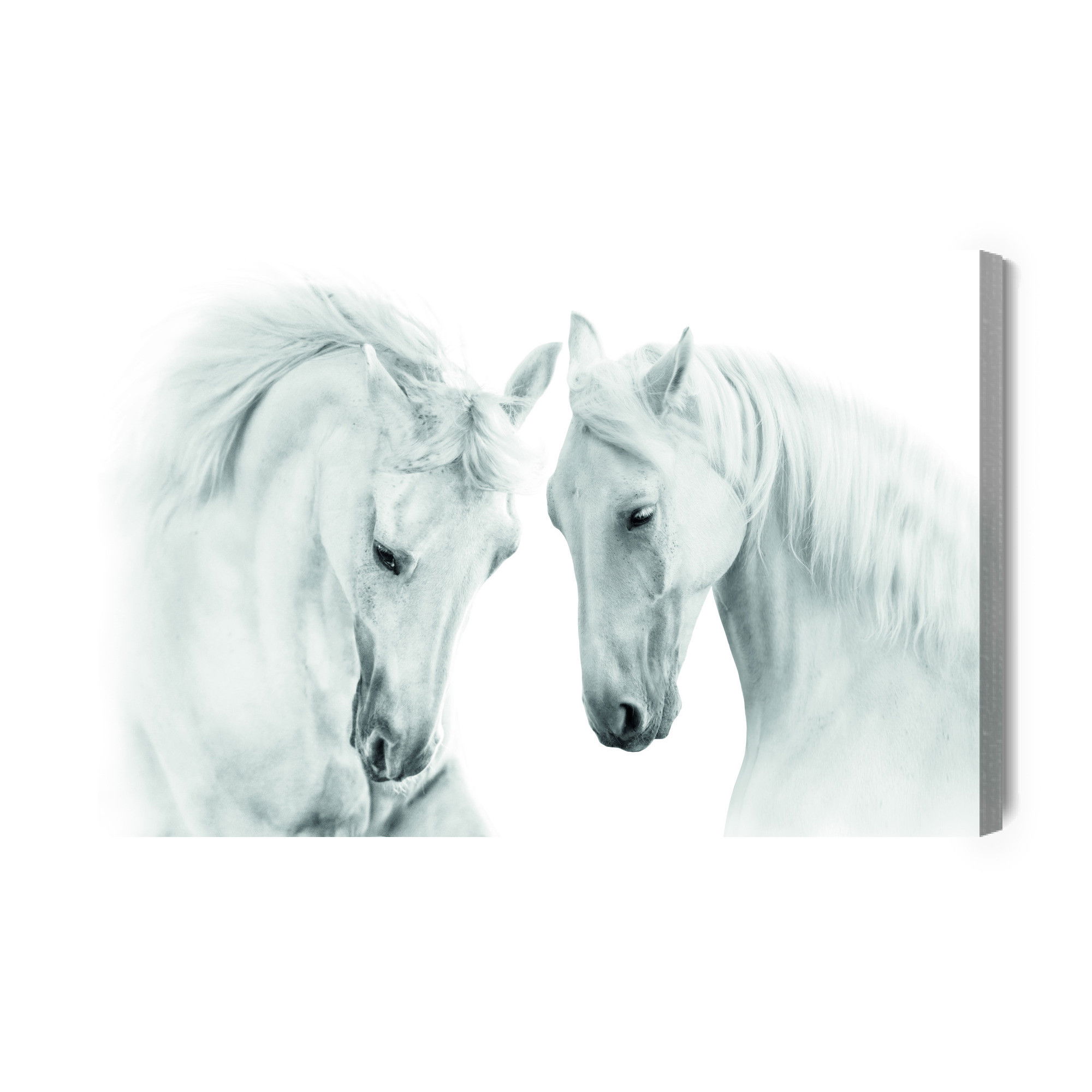 Motivet Two white horses återges med hög färgprecision och detaljrikedom tack vare HP Latex-teknologi. Trycket sker med vattenbaserade, luktfria och GREENGUARD Gold-certifierade bläck som ger en upplösning på upp till 300 DPI. Färgerna är UV-beständiga och behåller sin styrka även i ljusa rum, vilket gör tavlan lämplig för både hem- och offentliga miljöer.