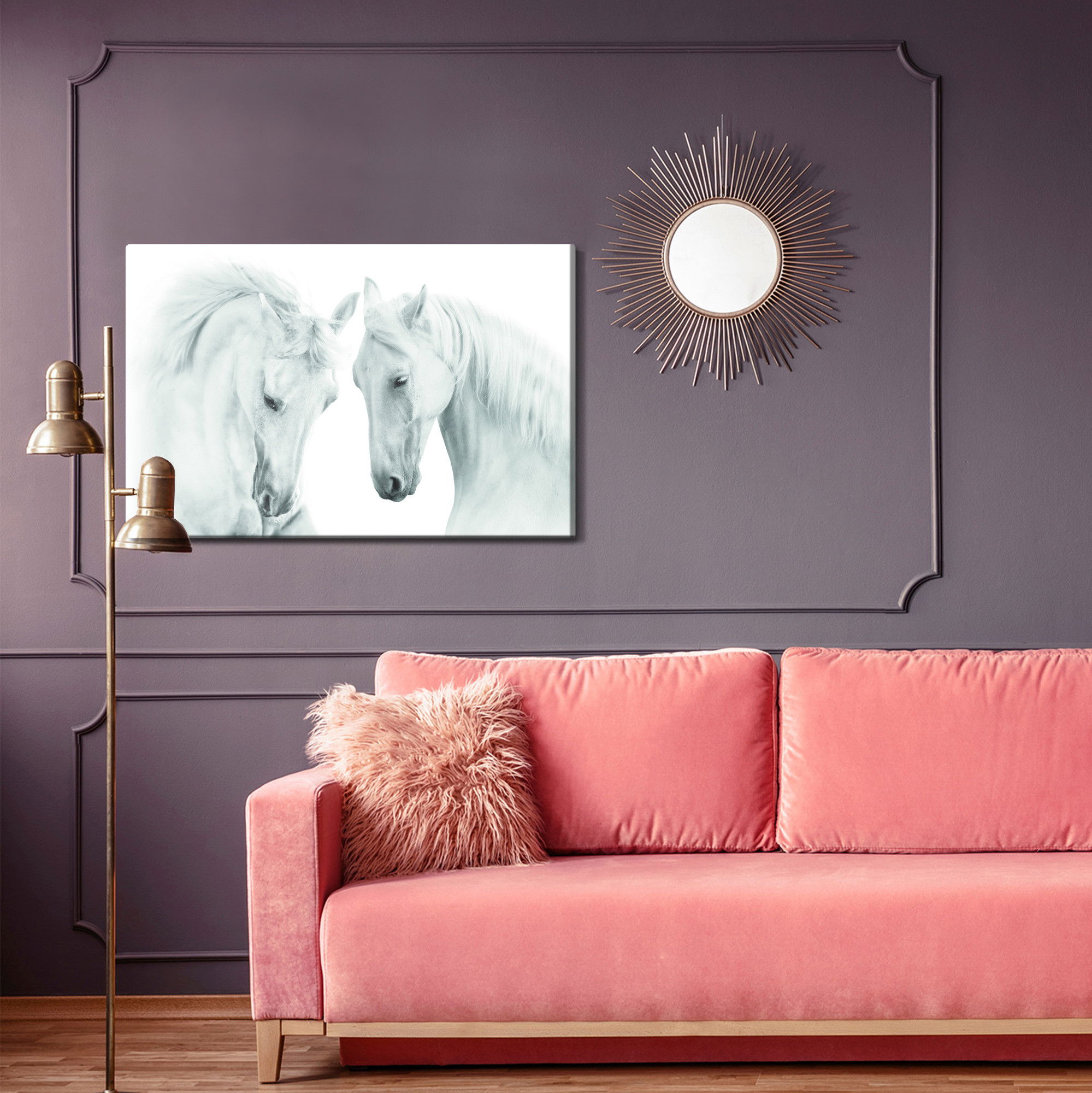 Ljuddämpande tavla – Two white horses för lugnare rum och mjukare akustik