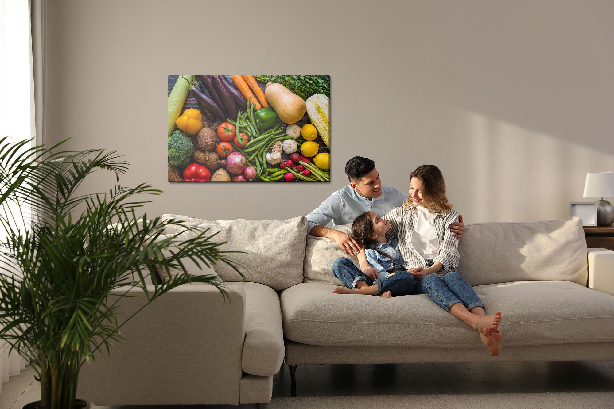 Motivet Vegetable table återges med hög färgprecision och detaljrikedom tack vare HP Latex-teknologi. Trycket sker med vattenbaserade, luktfria och GREENGUARD Gold-certifierade bläck som ger en upplösning på upp till 300 DPI. Färgerna är UV-beständiga och behåller sin styrka även i ljusa rum, vilket gör tavlan lämplig för både hem- och offentliga miljöer.