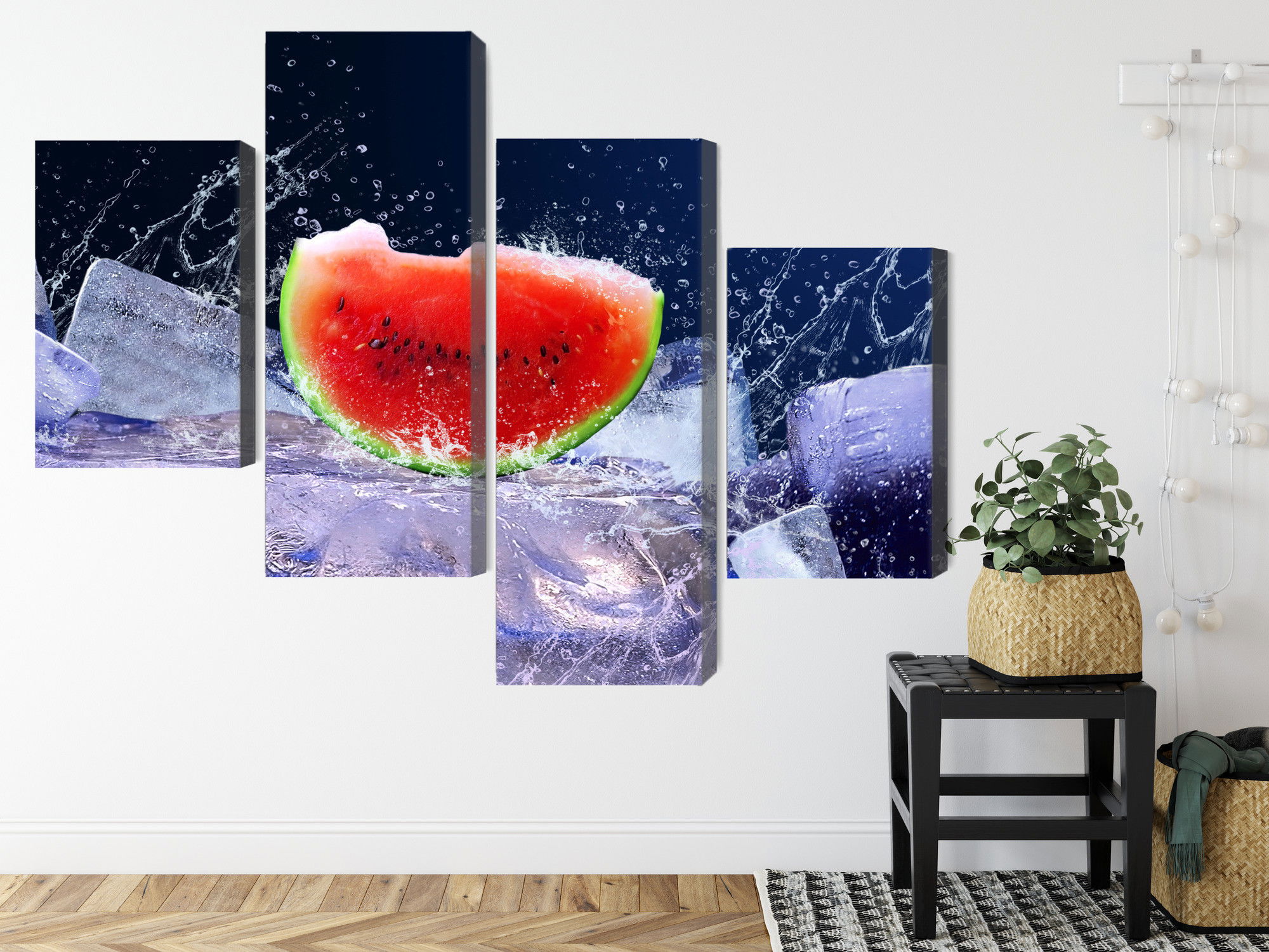 Motivet Watermelon on ice återges med hög färgprecision och detaljrikedom tack vare HP Latex-teknologi. Trycket sker med vattenbaserade, luktfria och GREENGUARD Gold-certifierade bläck som ger en upplösning på upp till 300 DPI. Färgerna är UV-beständiga och behåller sin styrka även i ljusa rum, vilket gör tavlan lämplig för både hem- och offentliga miljöer.