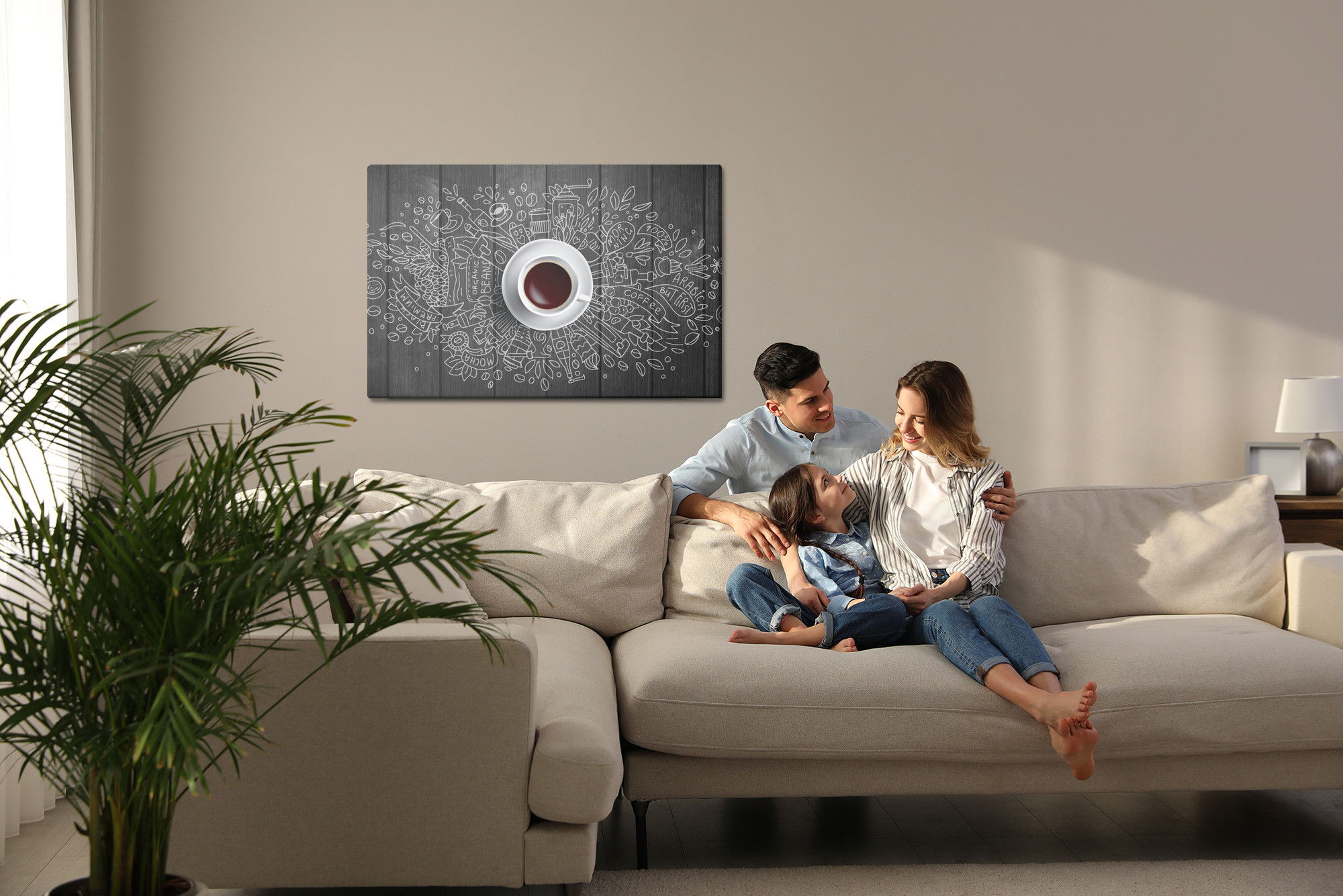 SilentDirects ljuddämpande tavla White cup of coffee är ett genomtänkt val för dig som vill förbättra rumsakustiken utan att kompromissa med inredningen. En kraftig fururam och en kärna av återvunnen polyester ger både stabilitet och ljudabsorption.